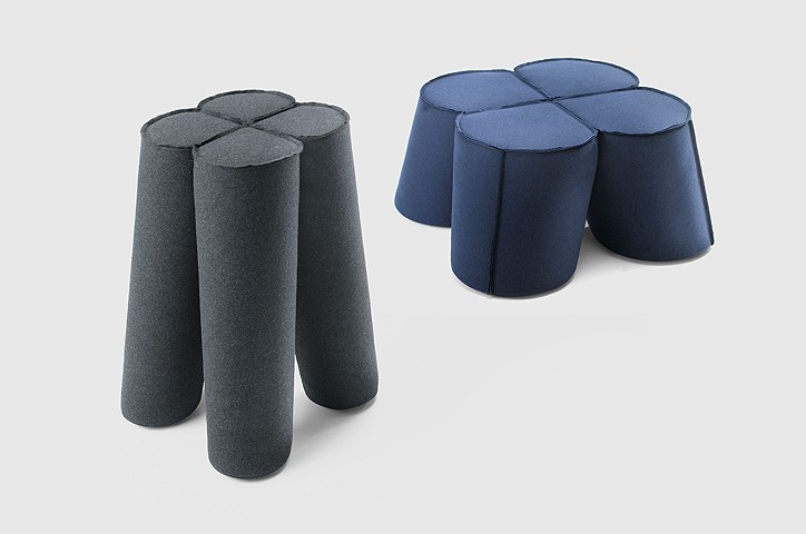 x40 ist eine Familie aus vier Polsterhockern mit polygonaler Basis in Form eines Dreiecks, Quadrats, Sechsecks und Achtecks.