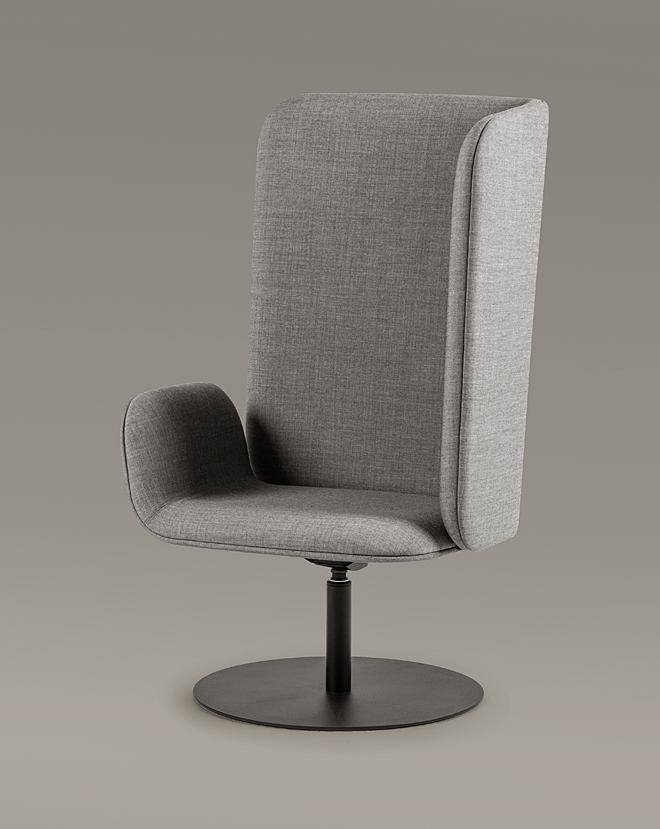 Shieldon ist ein bequemer Drehsessel, dessen Form eine Abgrenzung vom offenen Raum ermöglicht.