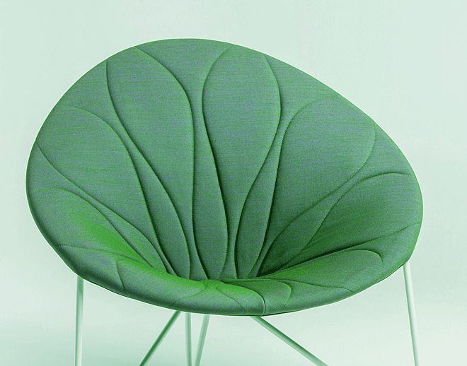 Comfee is a collection of armchairs with uniquely shaped and structured seating sections.