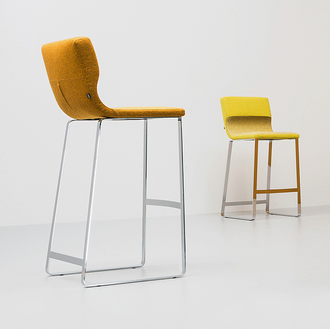 It's graphic shape is underlined by the combination of two fabrics - different on the backrest and on the seating.