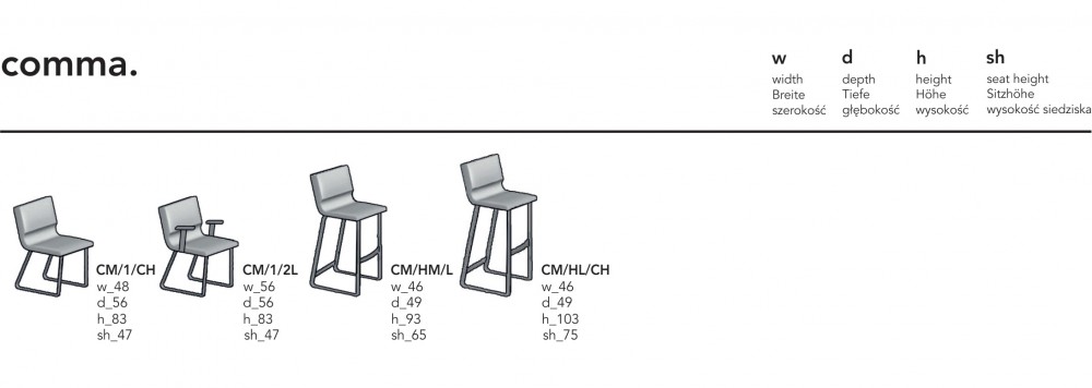 Upholstered chair, which shape - when looked at from the side - resembels a comma, where it takes its name from.