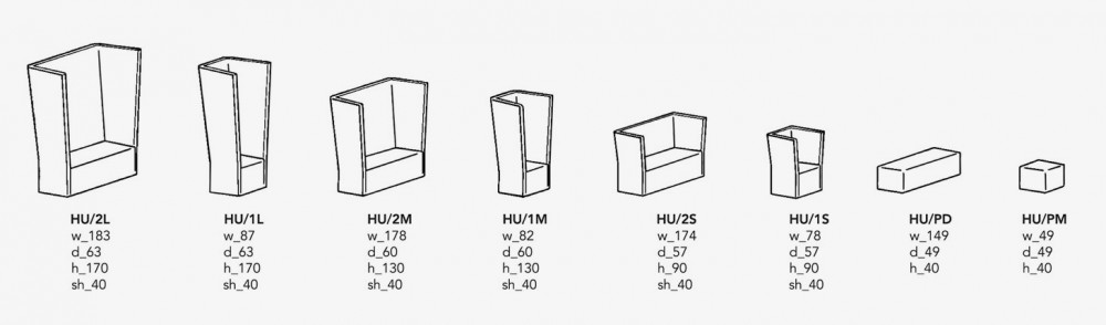 The items are set apart by their high backrests which come in three sizes: 90 cm, 130 cm and 170 cm.