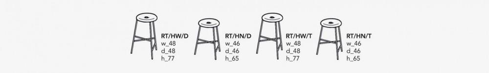 The stools are offered in two heights: 65 and 77 cm.