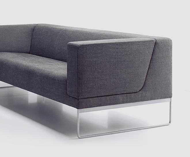The family also features divider walls designed for use as integral sofa elements or stand-alone screens separating, for example, a conference table from the rest of the interior.