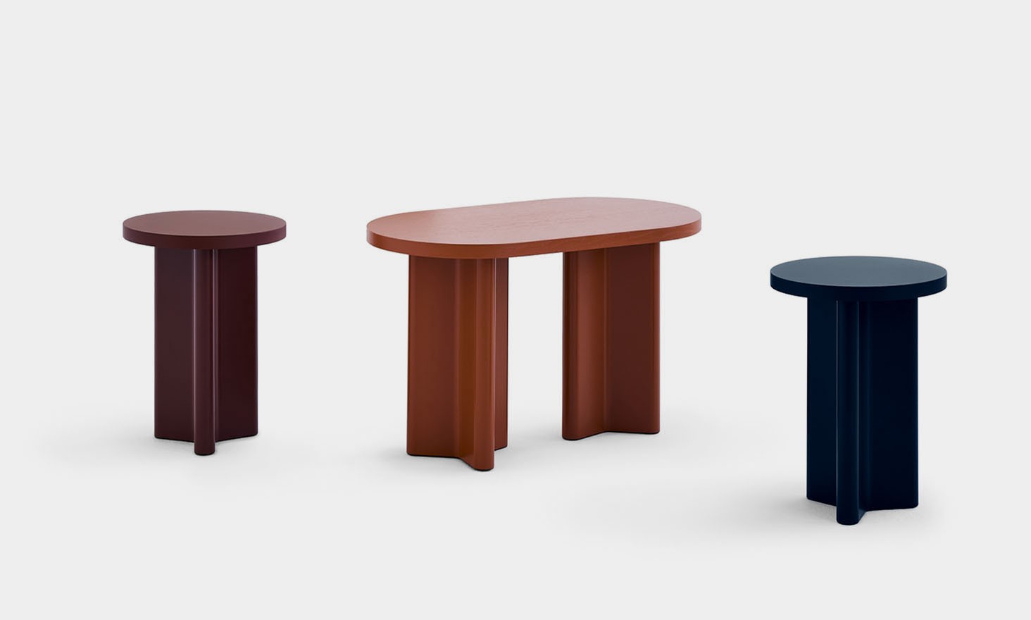 Die Möbelkollektion Cactus zeichnet sich durch ihre skulpturale Basis aus, die auf die Form des Kaktus Euphorbia Trigona in der Inspiration des Designers verweist. Die markante Aluminiumbasis wurde in einem Extrusionsverfahren aus einer Aluminiumlegierung nach einer von Piotr Kuchciński entworfenen Form hergestellt. Das dreiarmige Aluminiumprofil in verschiedenen Längen dient als Basis für die Tische und als Träger für die Regalbretter. Doppelte, aber in verschiedenen Winkeln gedrehte Aluminiumelemente schaffen eine dynamische Komposition, die den Raum belebt.