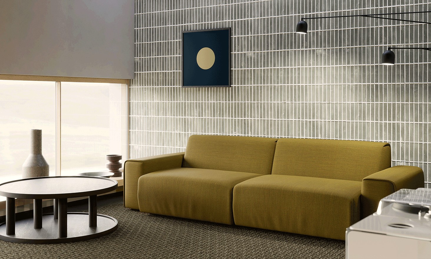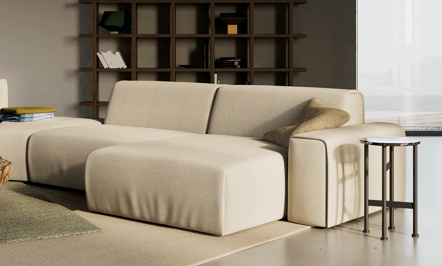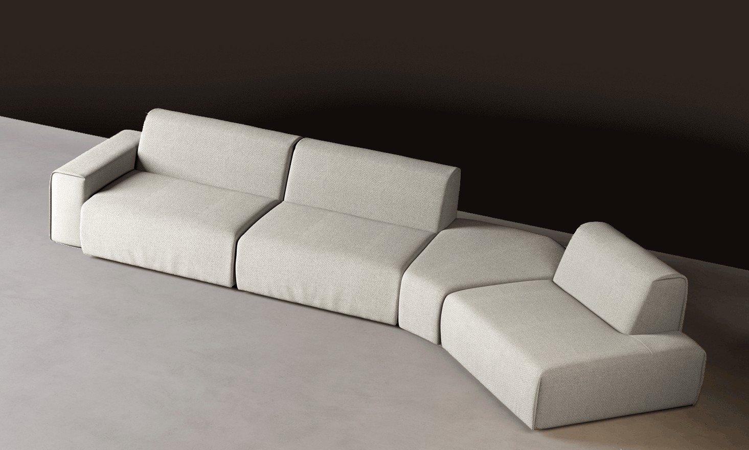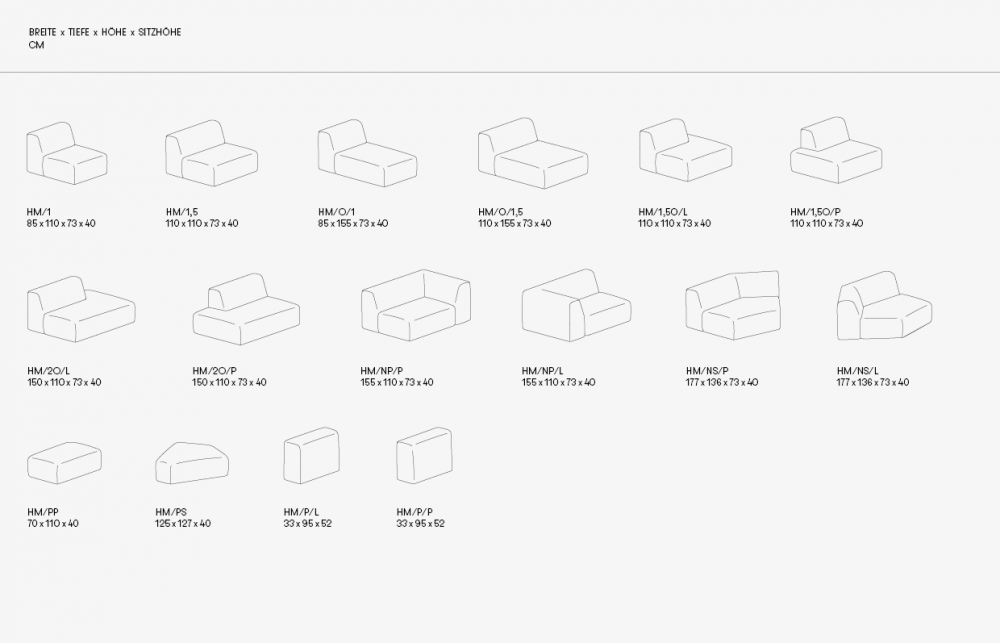 Dank verschiedener Körper können die Sofaelemente an eigene Bedürfnisse und eigenen Raum angepasst werden. Das Set der verfügbaren Sitze ermöglicht es, ein klassisches Ecksofa, ein asymmetrisches Sofa oder unauffällige, geometrisch offene Kompositionen zu erstellen.