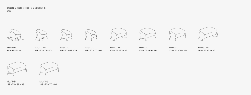 Das Design der Kollektion bezieht sich auf die Formgebung der 60er Jahre, die sich durch weiche Linien, einfache und elegante Formen sowie zeitlosen Komfort auszeichnet.