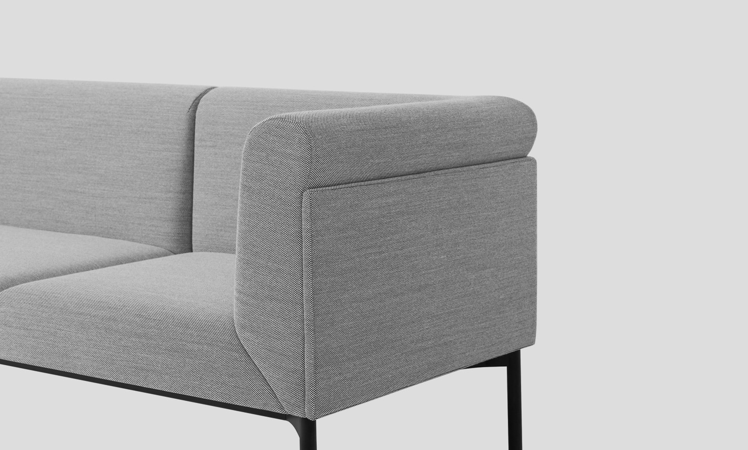Ein charakteristisches Merkmal der Kollektion sind zusätzliche, an den Rückenlehnen angebrachte Blenden, die je nach Wahl der Höhe Arbeits- oder Freizeiträume klar voneinander trennen oder sanft abdecken können, während sie die Formel des Sofas oder Sessels offen halten. Möglich ist zudem eine Umkehrung der Module sowie bei großen Inseln die Verbindung der Rückenlehnen auf eine solche Weise, dass sie zwei in entgegengesetzte Seiten ausgerichtete Reihen bilden.