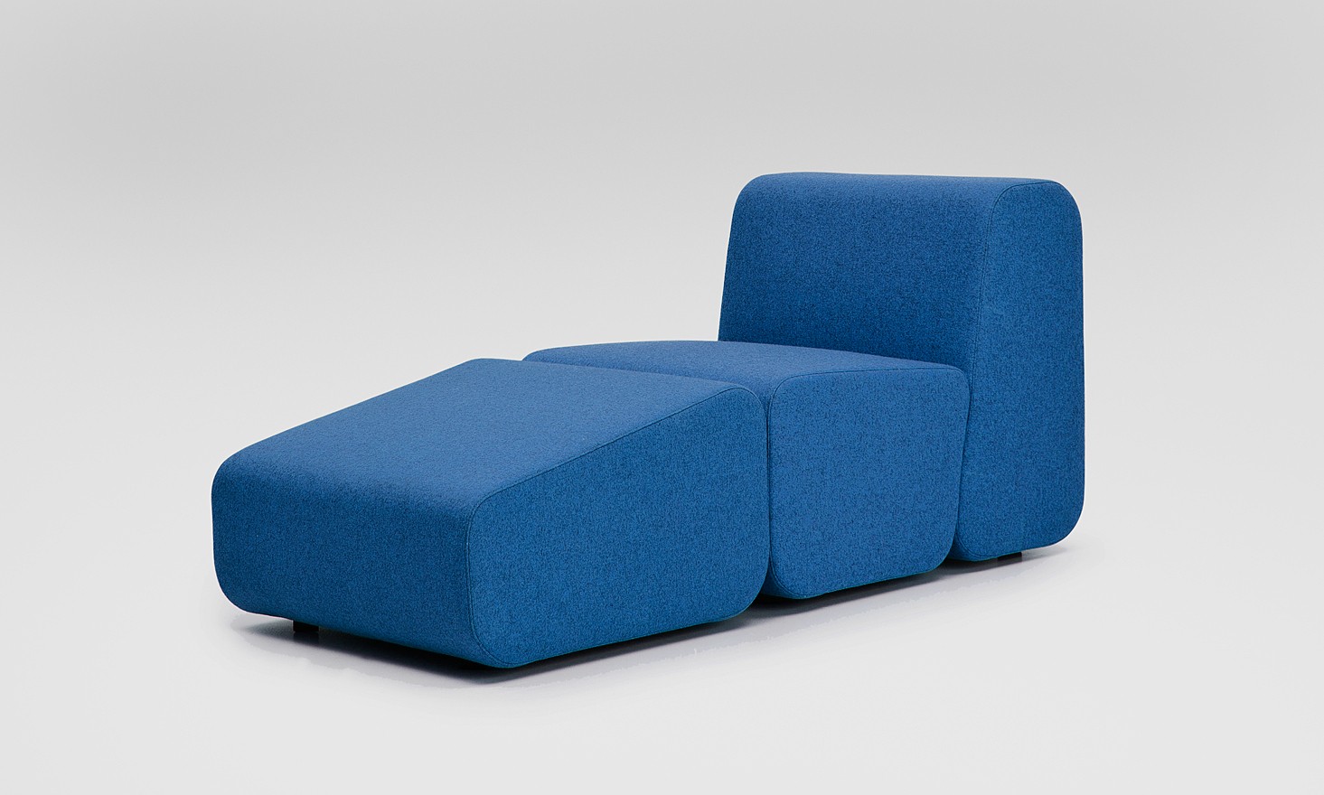 Die Familie besteht aus bequemen Sofas und Sesseln in mehreren Varianten, mit Armlehnen sowie mit und ohne Fußstütze, die zusammen mit dem Sessel die interessante Version eines Chaiselongues darstellt.