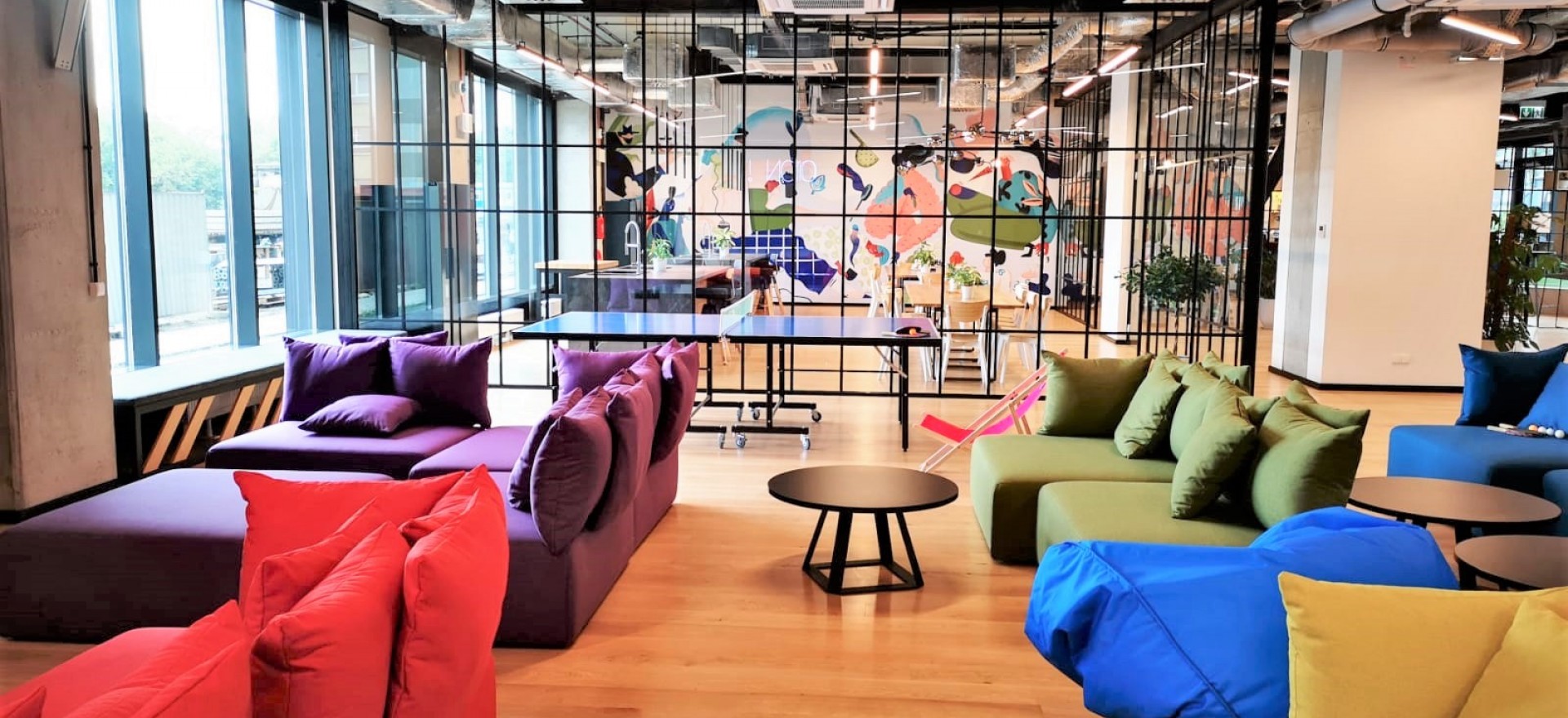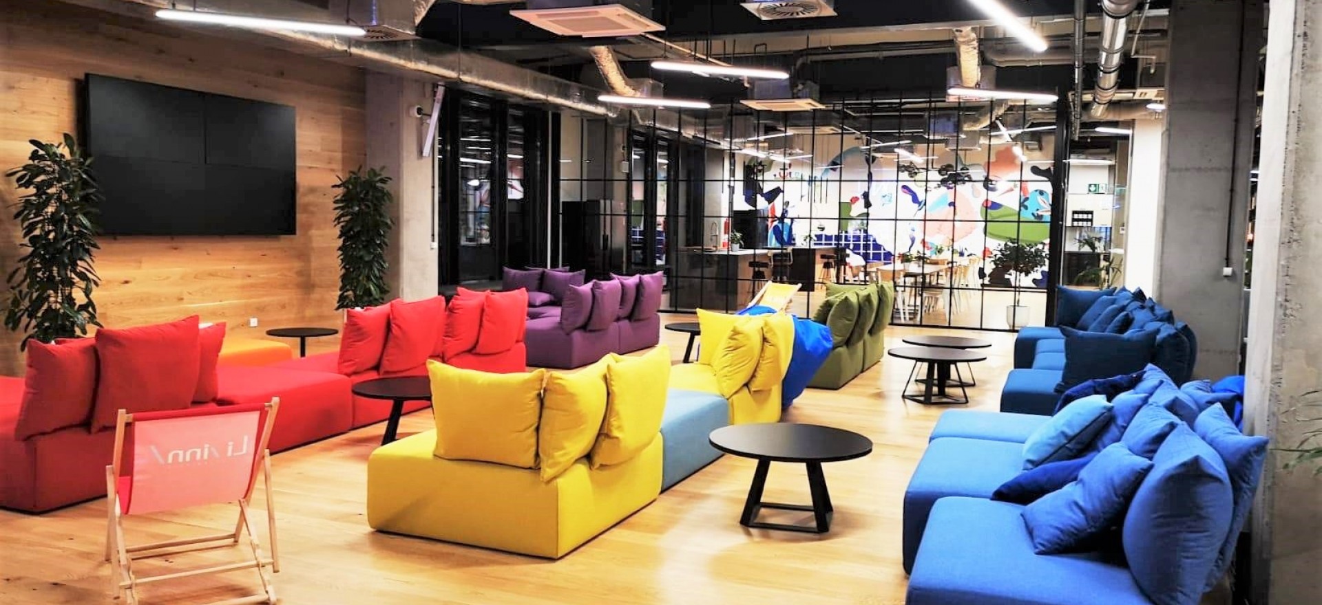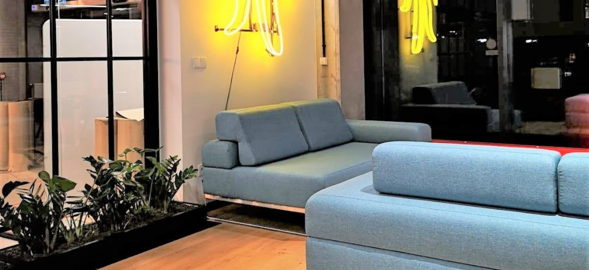Und genau in diesen Gemeinschaftsbereichen, die dem Lernen oder der Erholung dienen, wurden Möbel der Marke NOTI aus zahlreichen Kollektionen verwendet. So laden mehrere farbige Sofas Le Monde zusammen mit einem blauen Sofa Rosco zur Entspannung ein. Man kann auf unserer Bouli schaukeln sowie auf den grauen Stühlen Mamu oder Mishell bzw. den Polsterhockern x40 Platz nehmen. Die Weite der Terrasse und den Ausblick auf die Stadt von oben kann man in den Produkten Comfee genießen.