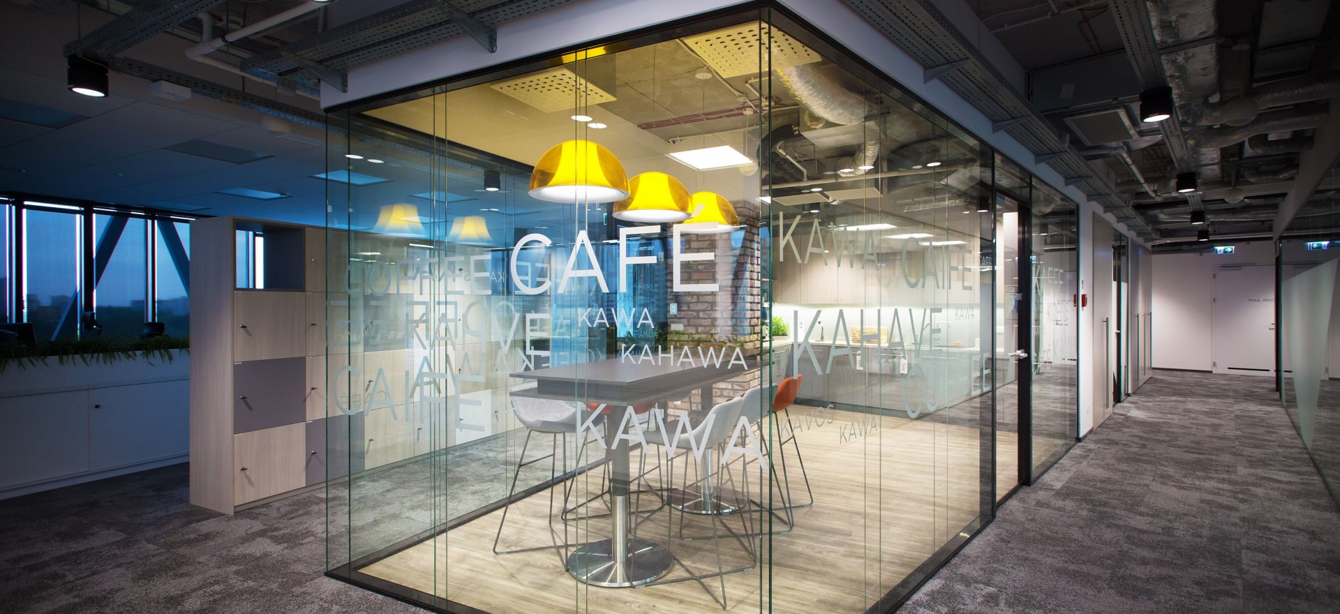 Die neue Fläche in Villa Metro ist an die Bedürfnisse und den Arbeitscharakter des Firmenteils, der sich auf die IT-Leistungen konzentriert, sowie an die Philosophie von Circle K angepasst. Das Büro ist in ziemlich kleine offene Flächen aufgeteilt, die durch Besprechungsräume mit Tageslichtzugang voneinander getrennt und durch kleine Räume für stille Arbeit oder Telefongespräche ergänzt sind. Sehr großer Wert wurde auf die Qualität des Arbeitsraums gelegt, der mit elektrisch höhenverstellbaren Schreibtischen, Bürosesseln mit Kopfstützen, Grün und Decken mit entsprechenden akustischen Eigenschaften ausgestattet wurde.