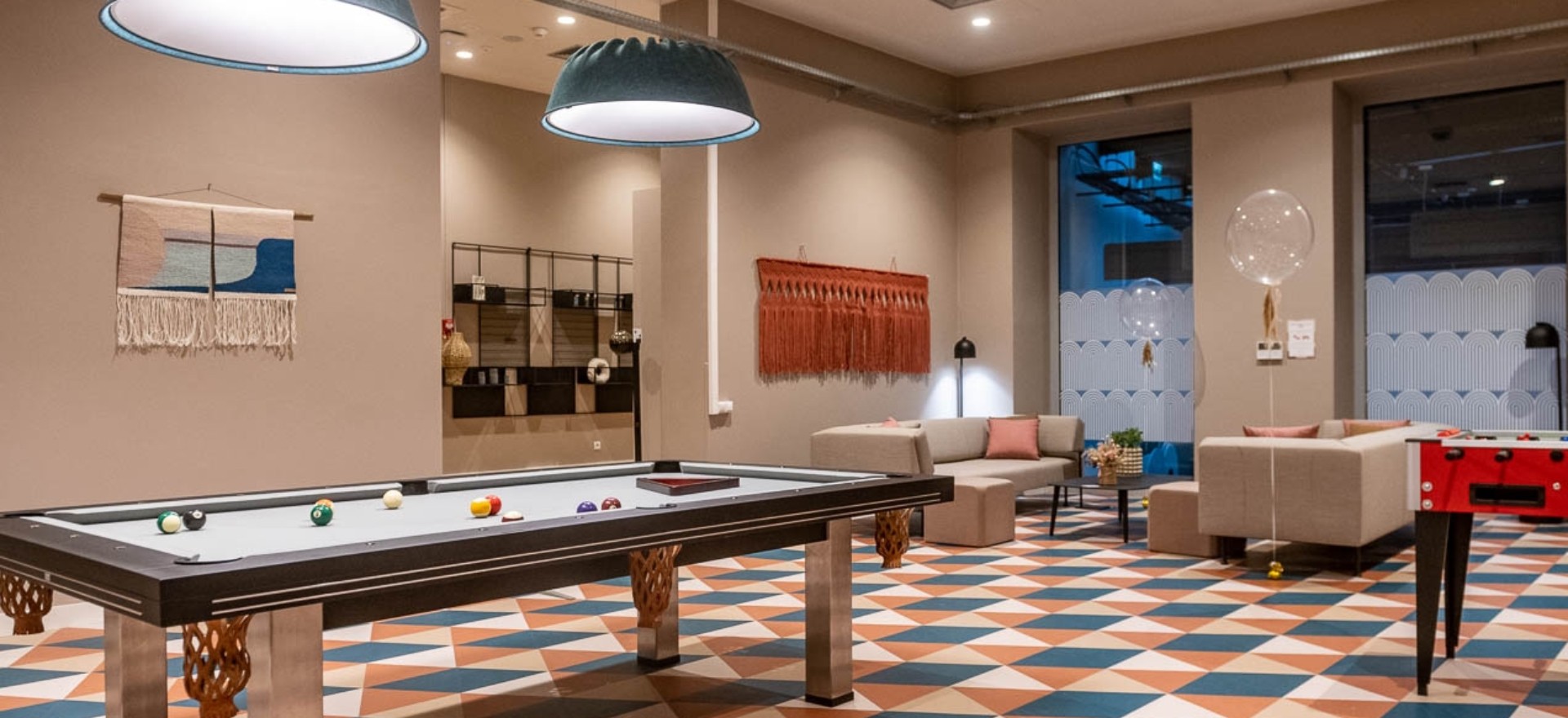 Google besetzt zwei Etagen, die den Mitarbeitern neben den üblichen Büroräumen auch Gesprächs- und Entspannungsbereiche, ein Spielzimmer, einen Raum für Eltern und Kind sowie eine Fahrradwerkstatt bieten. Es herrscht eine freundliche, informelle Atmosphäre.