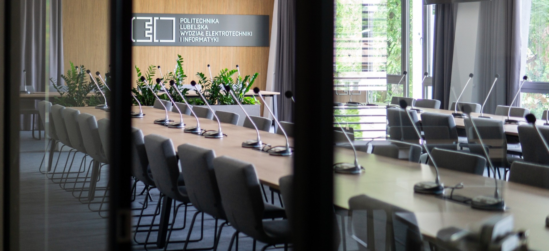 Die Innenausstattung des Fakultätsratssaals an der Fakultät für Elektrotechnik und Informatik der Technischen Universität Lublin wurde in Auftrag gegeben. Das Projekt wurde vom Studio Kunkiewicz Architekci entworfen.
