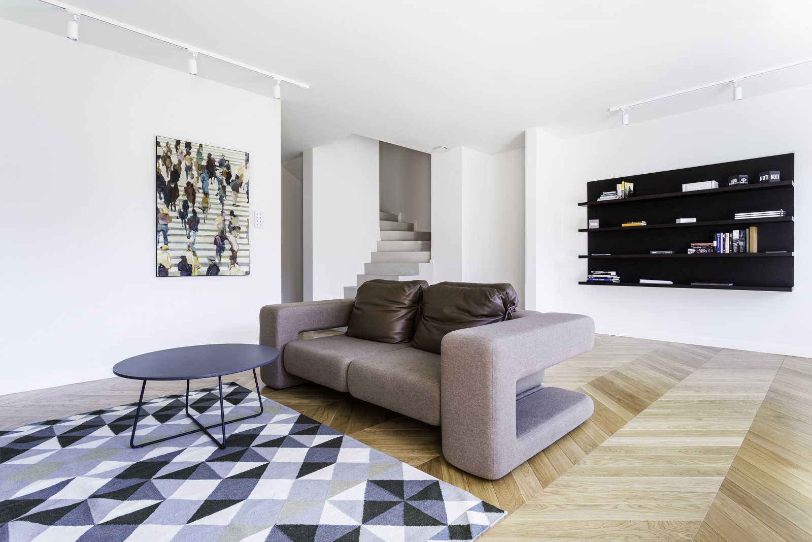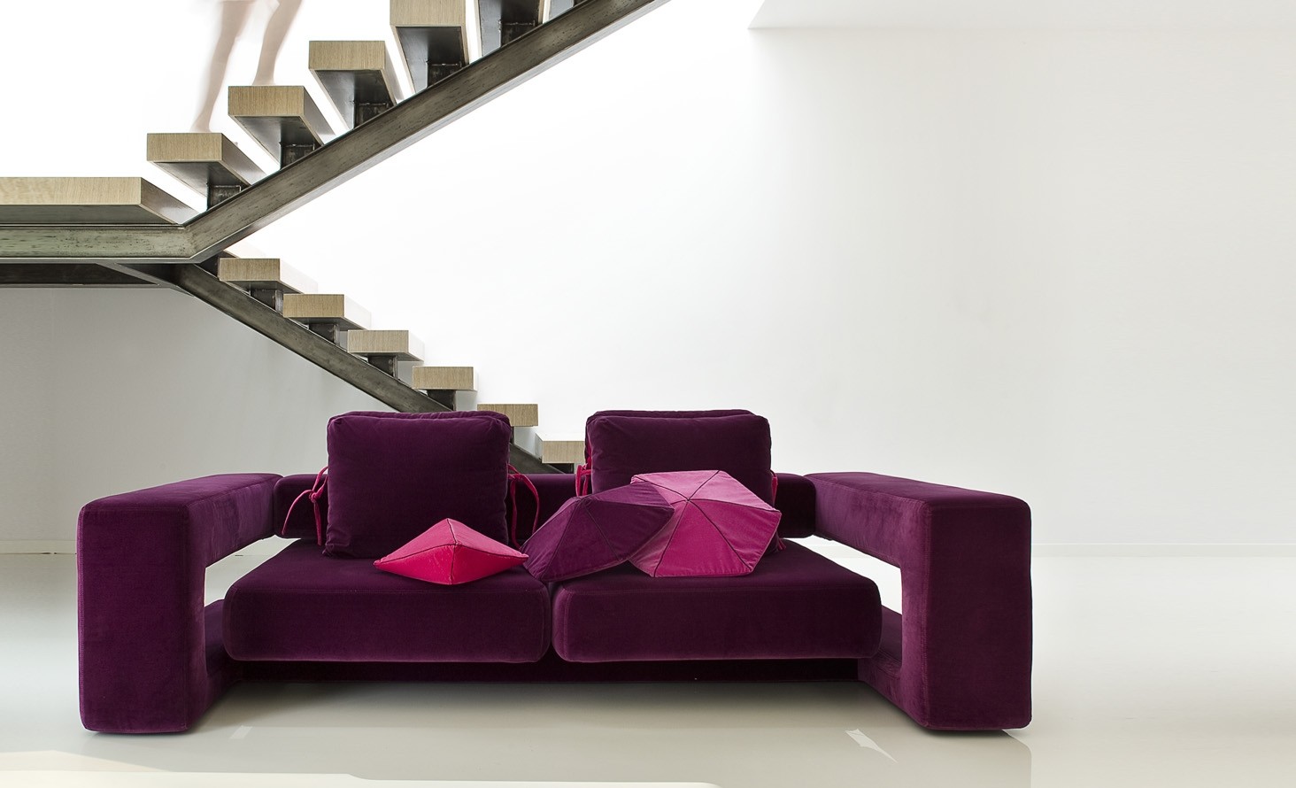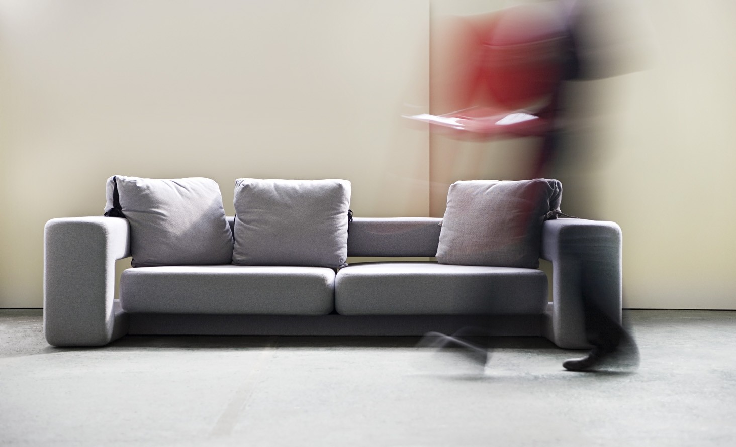A sofa with wide comfortable elbow-rests which cover the seat - a characteristic feature of the whole collection.