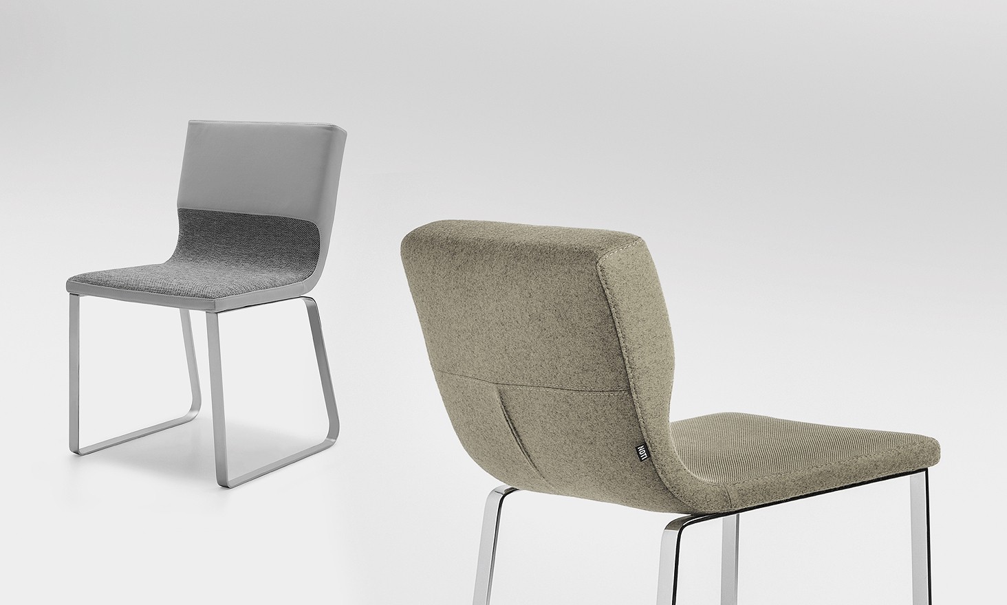 It's graphic shape is underlined by the combination of two fabrics - different on the backrest and on the seating.