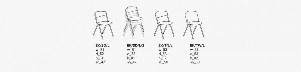 In the non-upholstered variant, the chairs can be easily stacked because of free space left between the seat and backrest. Eke is an extremely functional solution for all interiors where every square metre of space counts.