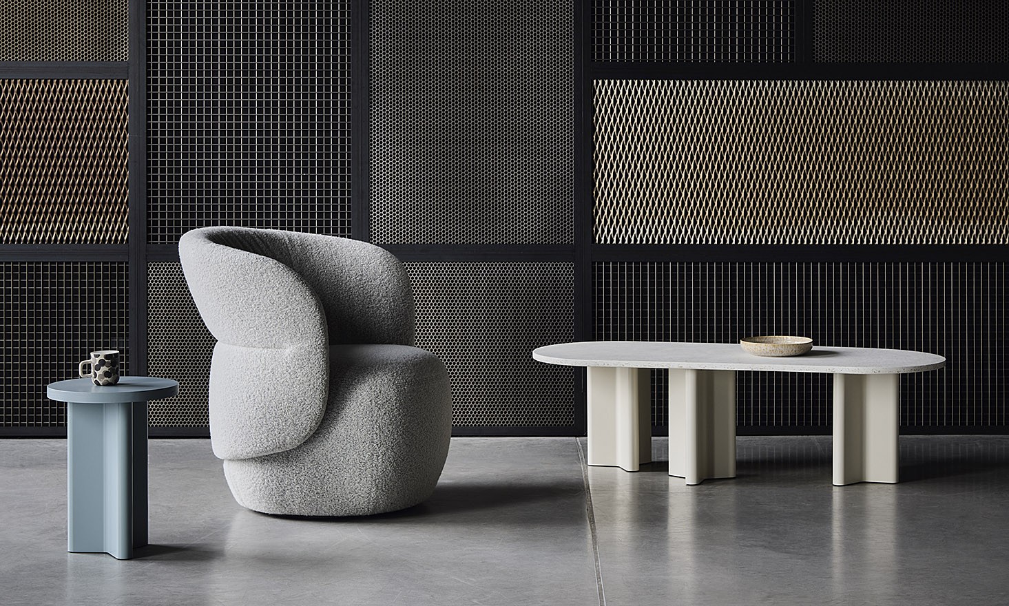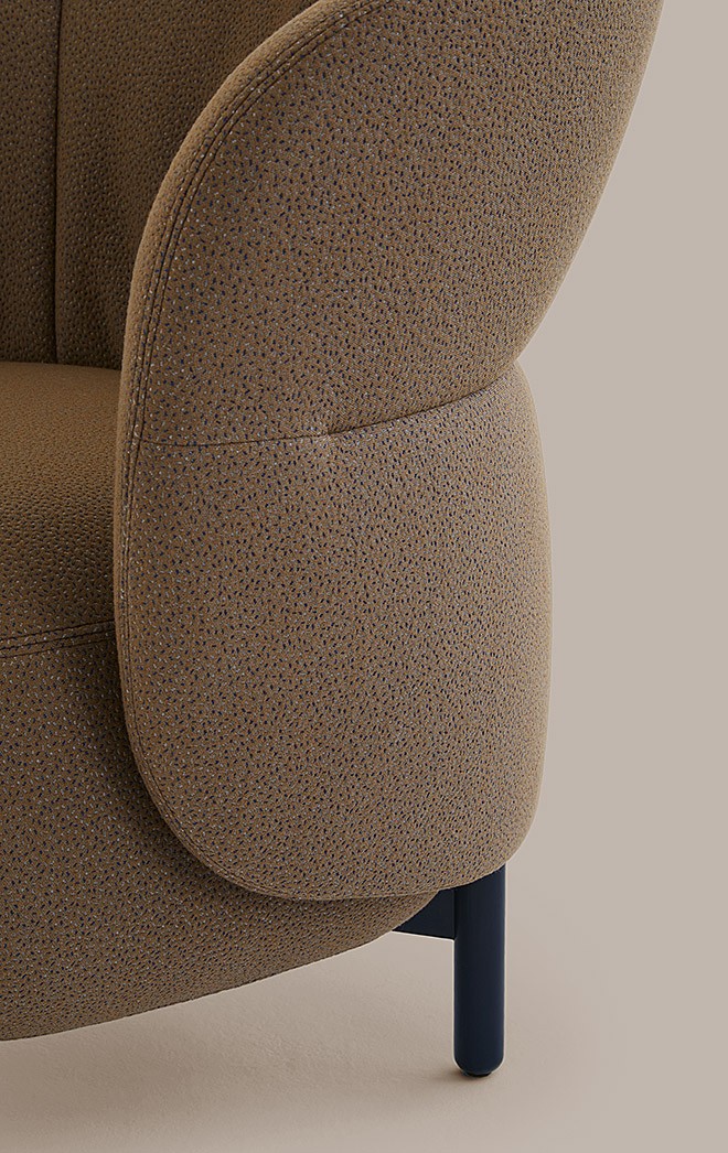 The shapes of all Kori pieces are drawn with soft, fluid lines. The rounded, organic wavy backrests resemble nutshells. They look friendly and comfortable at a glance, as they tuck the user in.