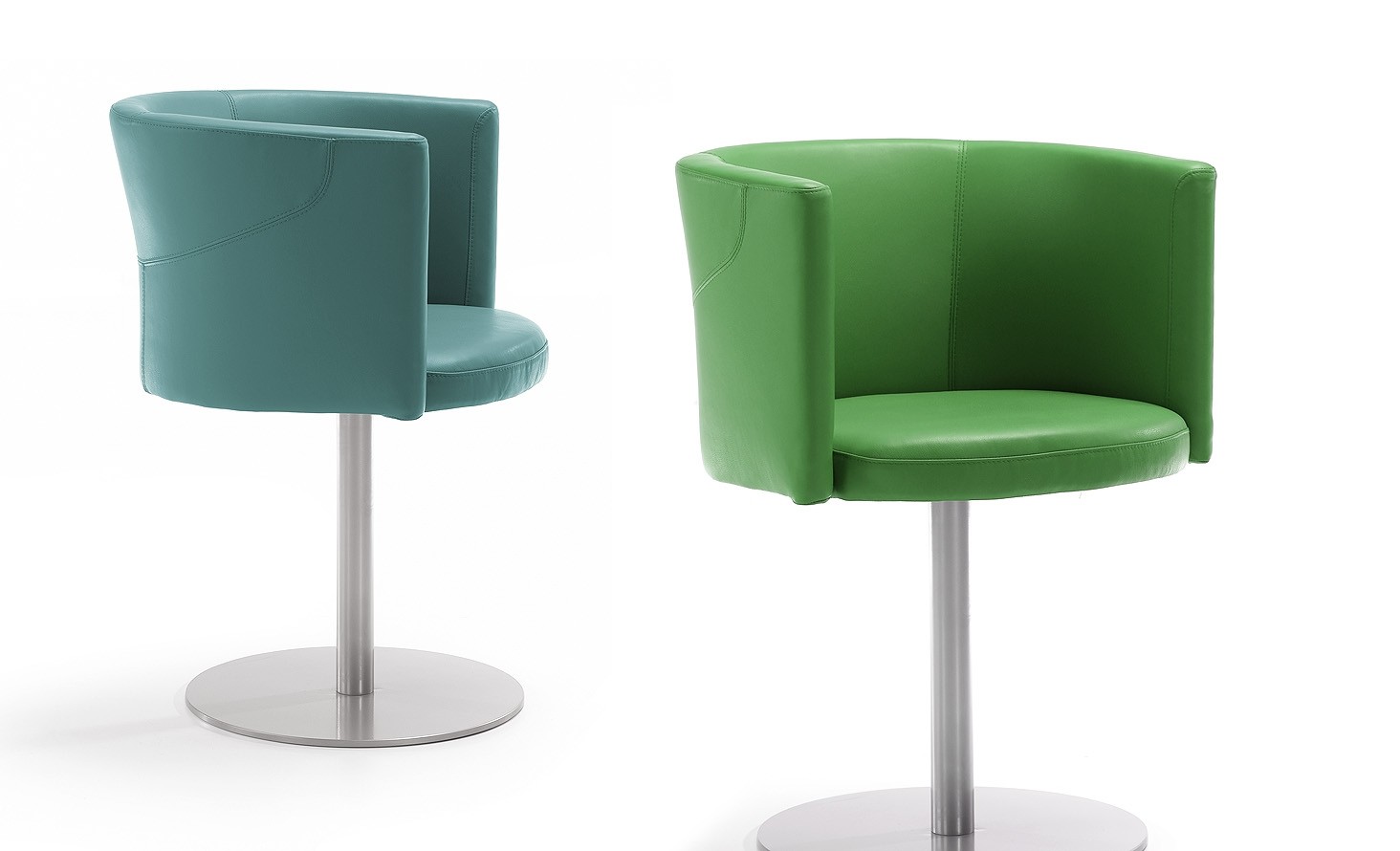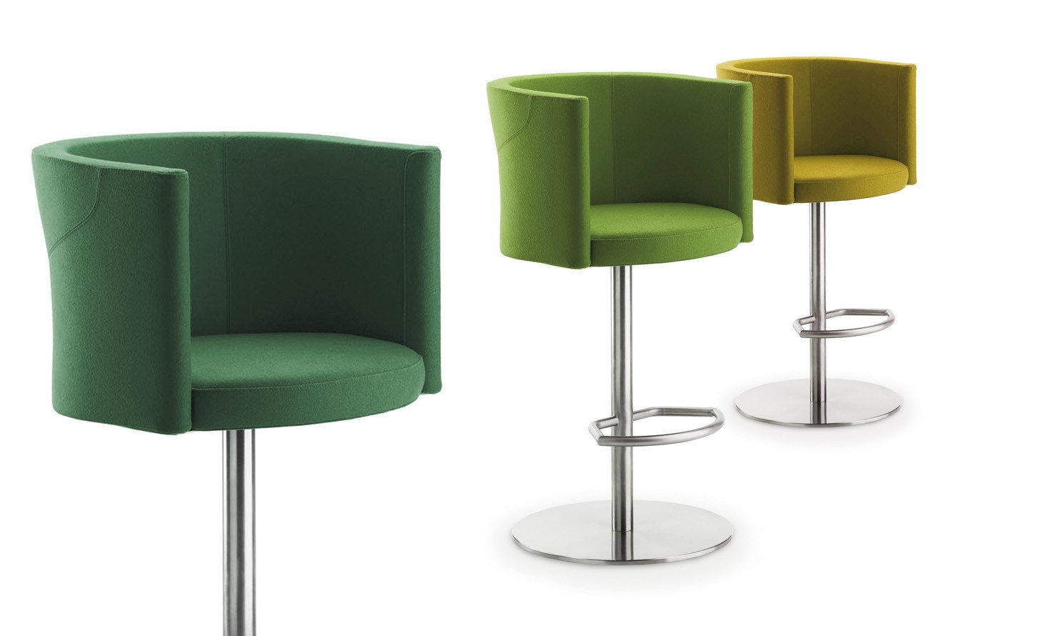The chair is available in two versions – with straight legs made from varnished steel or on a revolving dish made from varnished or stainless steel, while the bar stool only comes on a dish base.