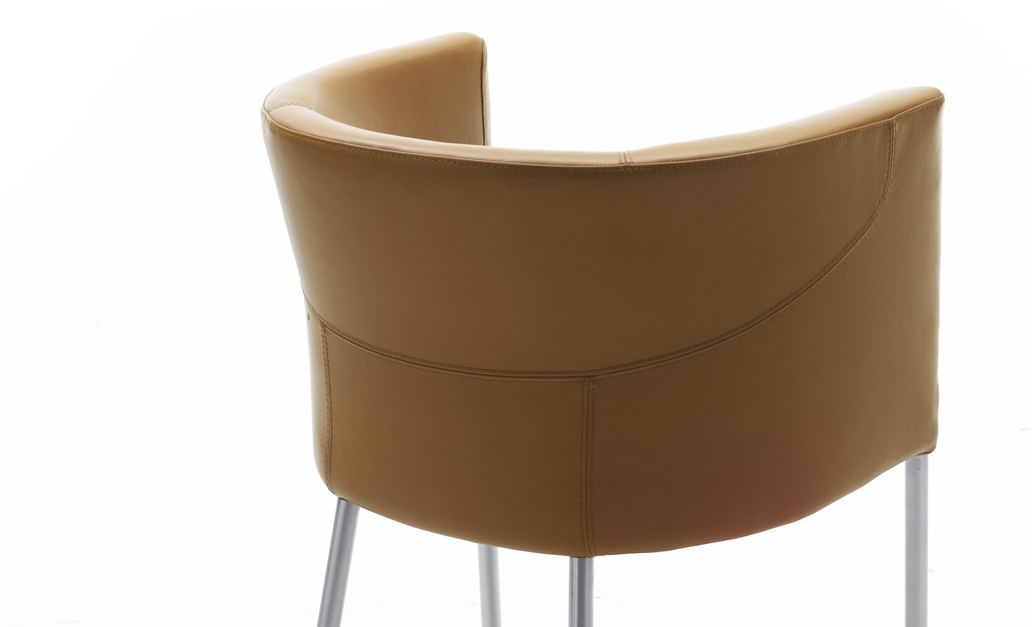 A chair with oval backrest and elbow-rests as well as carefully prepared lines of stitches which make it even more attractive.