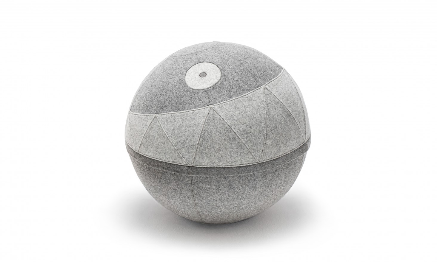 It is lightweight, mobile and extremely comfortable. The cover, upholstered in 100% wool, conceals a rubber ball with a diameter of 65 cm. All you need to do is to insert the ball, inflate it using the supplied pump and zip up the zip fastener around the ball – and the pouffe is ready for use. Owing to the ballast placed in the bottom section, the pouffe is able to stay in a fixed position on the ground, maintaining the pattern.