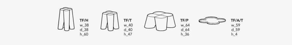The family consists of three types of seats of different sizes: pouf, stool and bar stool.