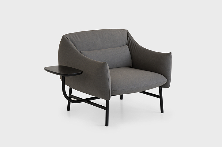 The elegant simple forms of the Lua collection are made of pillows with soft lines. Original accessories, i.e. a wooden table or a lamp with a lampshade, can be added to the delicate steel supporting construction of the furniture.