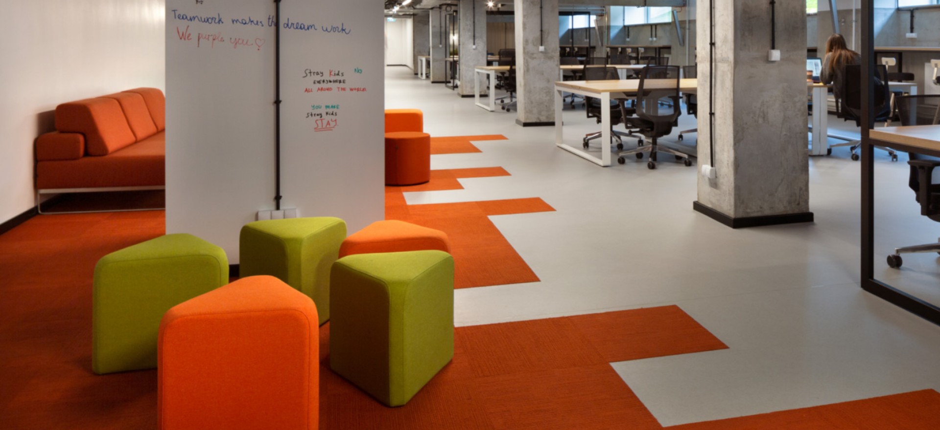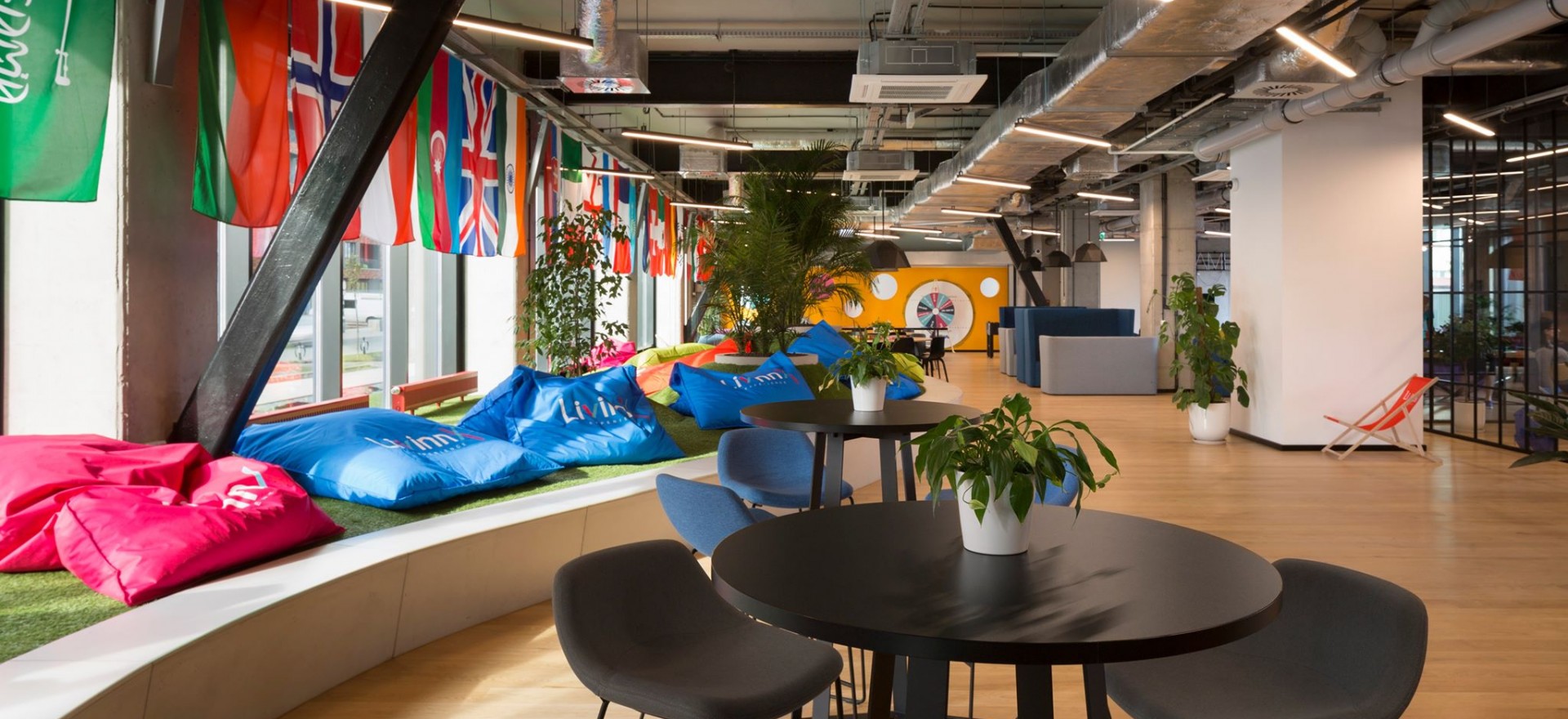 The common rooms for studying and relaxation are furnished with NOTI furniture from a number of collections. Several spacious and colourful Le Monde sofas, and a blue Rosco sofa, provide an open invitation to relax. The residents can also have fun in a Bouli swinging chair, sit in grey Mamu or Mishell chairs, or mix and mingle on x40 pouffes. The terrace has been fitted with Comfee sofas to sit down and take in the panorama of the city.