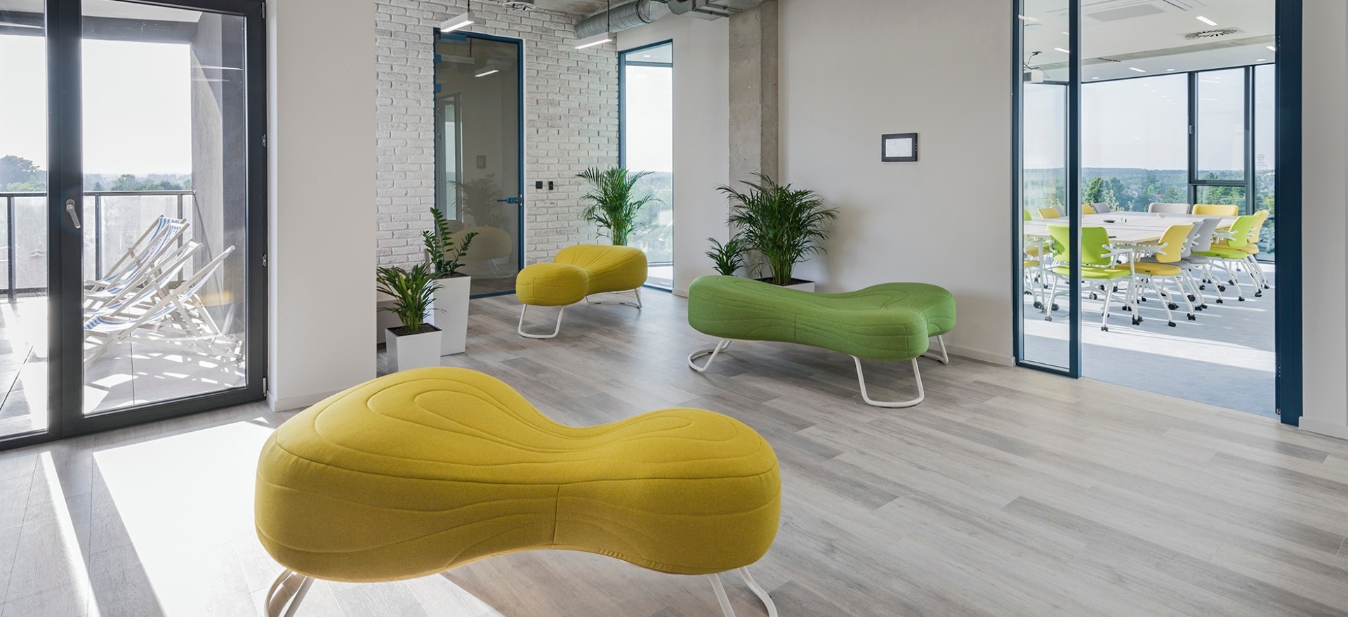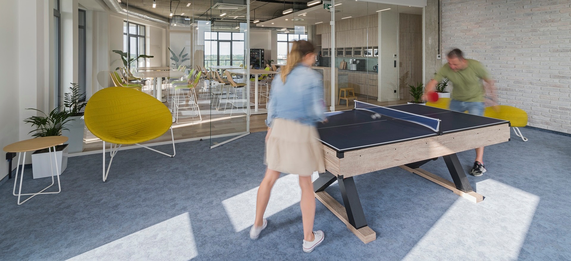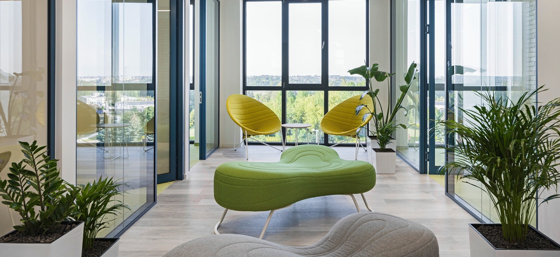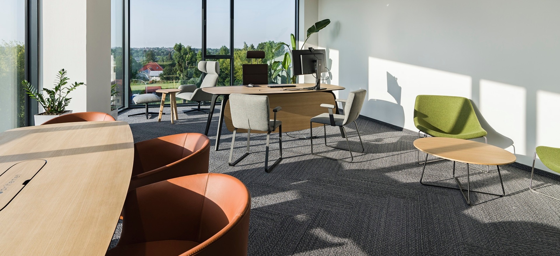 When creating the space, the designers followed the idea of a modern-day office, where work-life balance matters. Typical office spaces and conference rooms are accompanied here by ping-pong tables, relaxation areas and lounges where users can chat quietly over a cup of coffee. They can also relax in a Comfee armchair, swing in a Bouli or discuss their latest ideas sitting in a Mishell chair. Other collections used by the designers include Manta, Tulli light, Comma, Tritos, Rosco and Clapp.