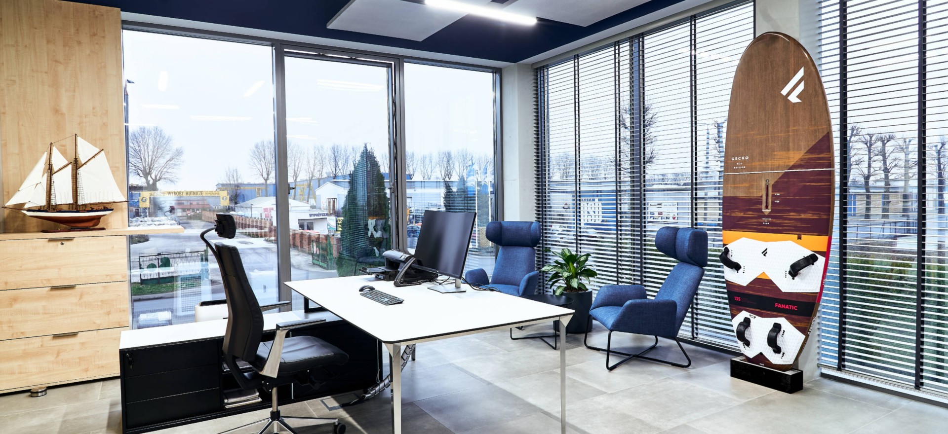 These are not the only marine-themed details in the room. The eye is immediately caught by a windsurf board which is not merely a decoration: the CEO of Dienes is a keen windsurfer himself.