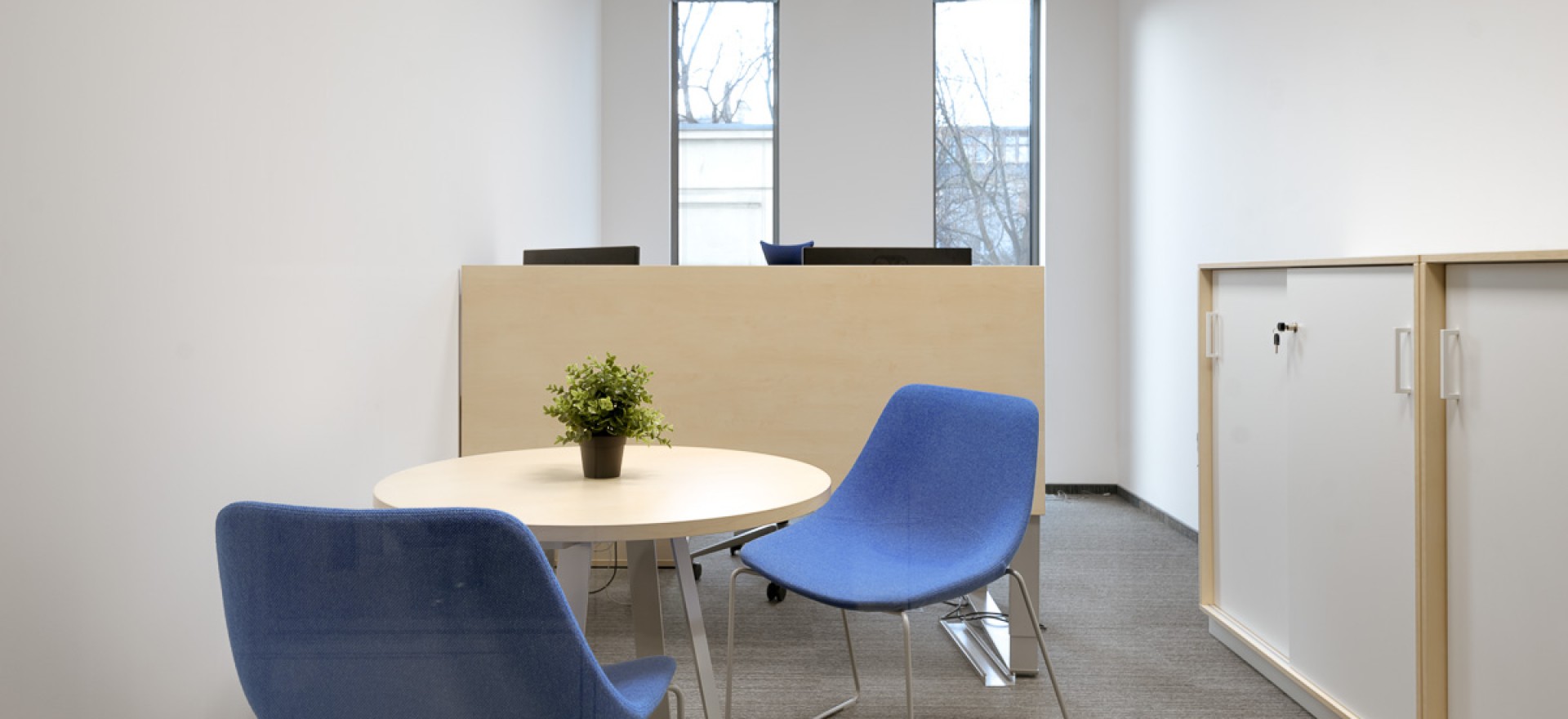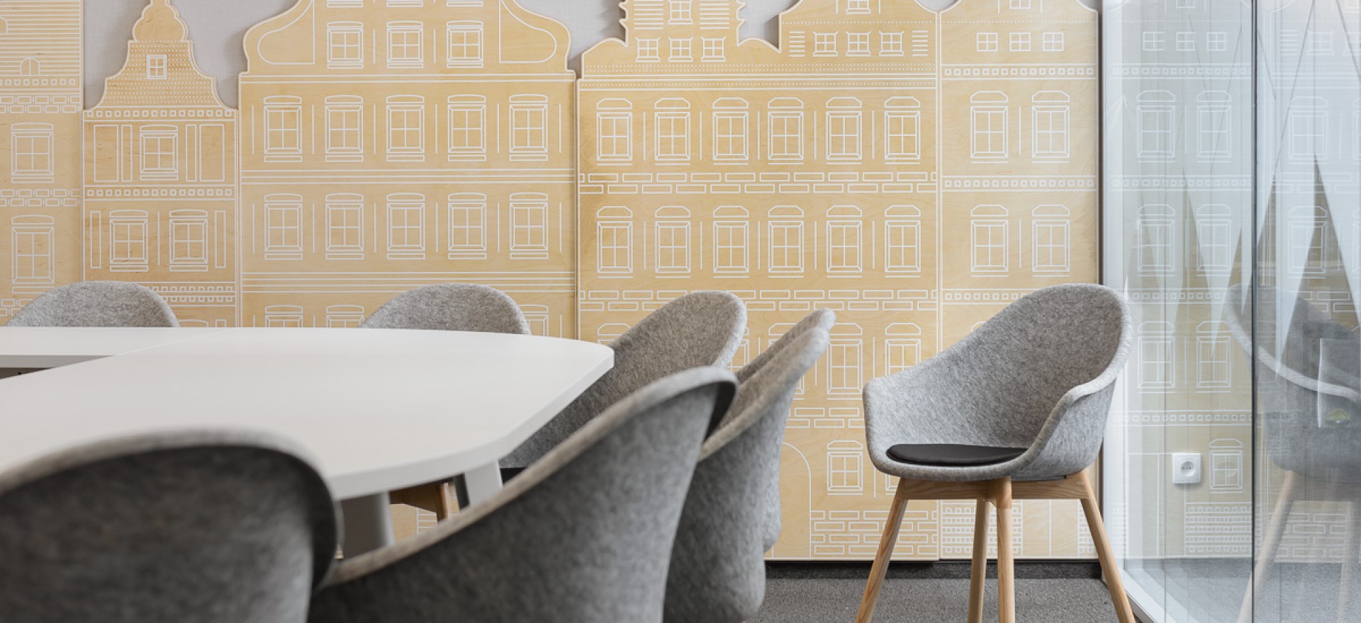 The interiors are dominated by bright colours, with blue matching the visual identity of the Fresenius brand. The design of the meeting rooms has been inspired by the history and culture of Wrocław, the city where the offices are located.