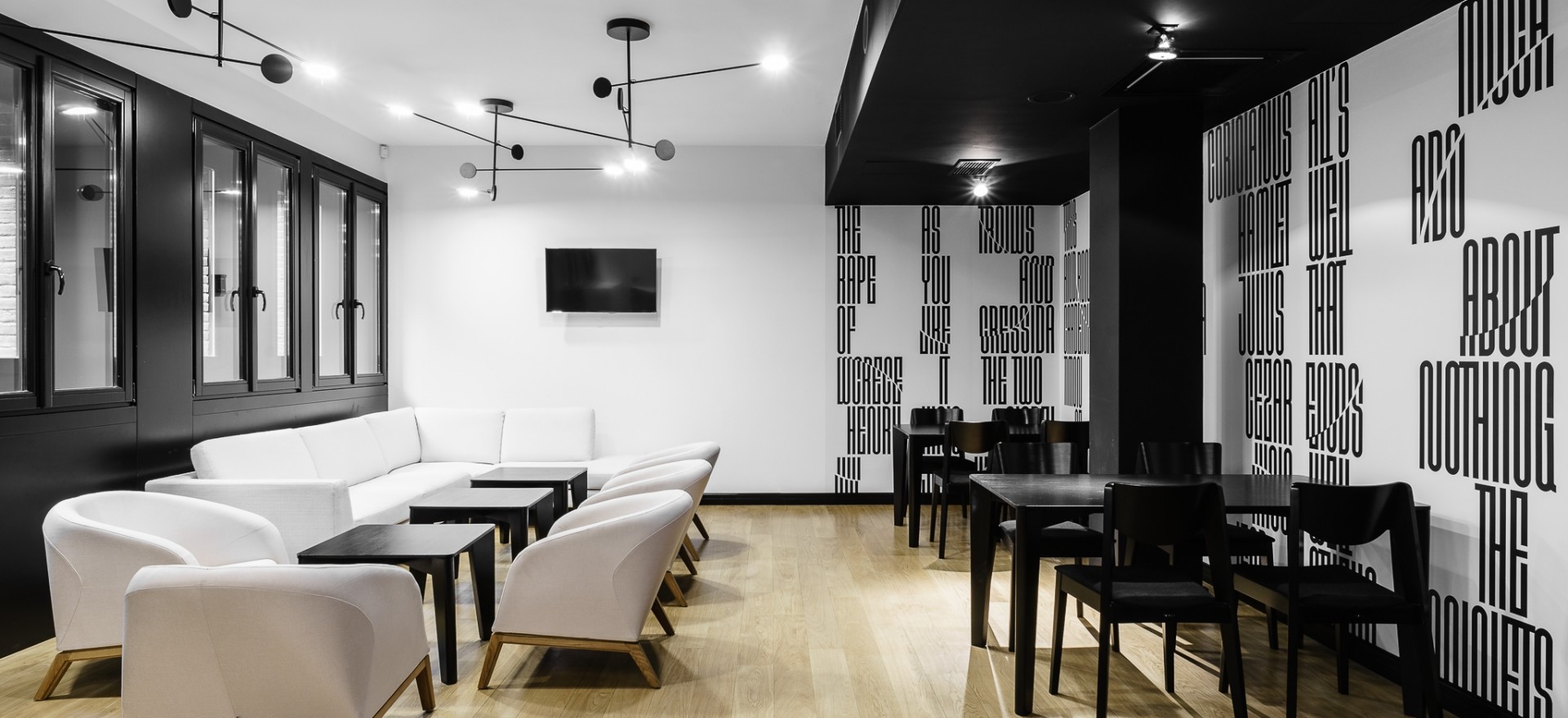 The main assumption underlying the design of the cafeteria for actors of the Gdańsk Shakespeare Theatre was to create a light, comfortable interior that would serve as a perfect place to relax before and after performances, and during rehearsals.