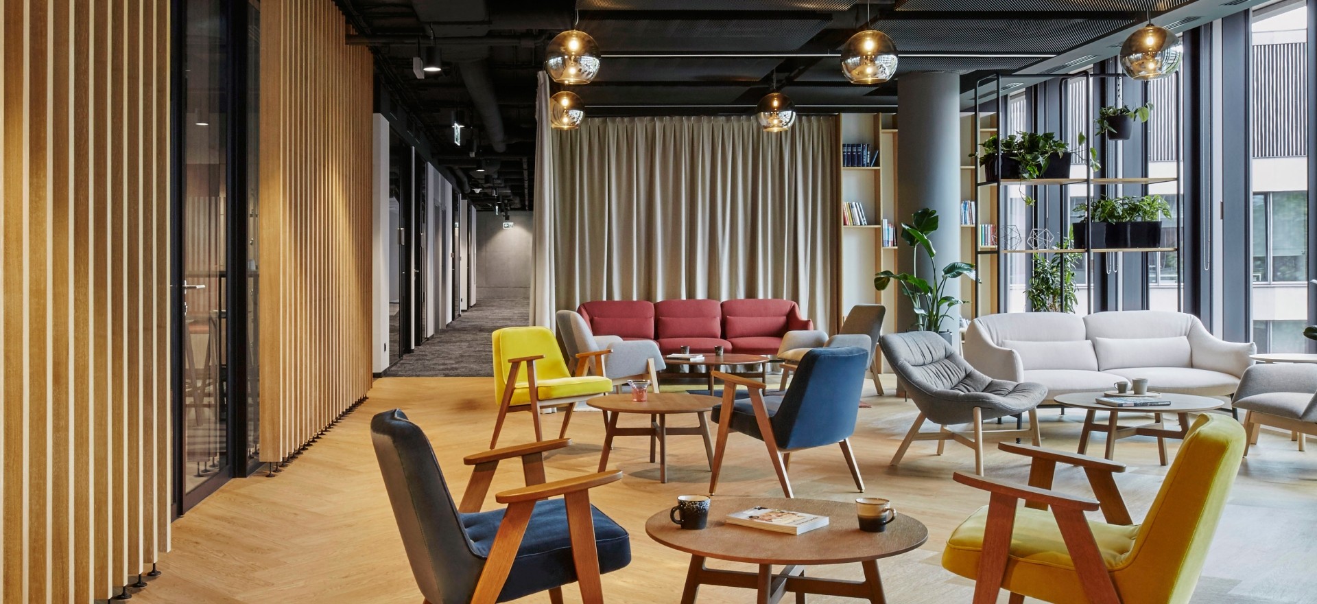 Studio A-KA’s designers came up with a modern, functional office space. Bold solutions and powerful colours of furniture upholstery are particularly remarkable, creating vibrant spaces for meetings, talks, socialising and work.