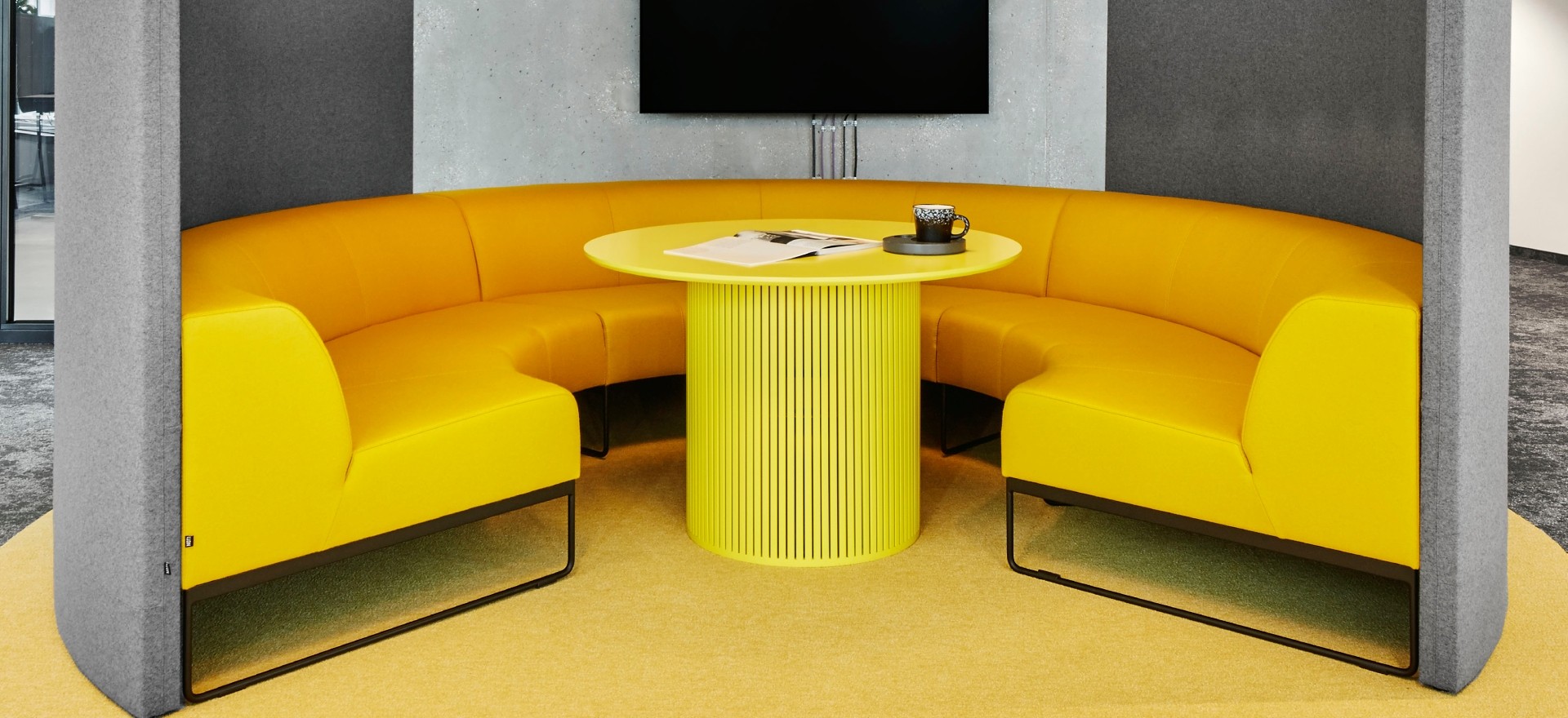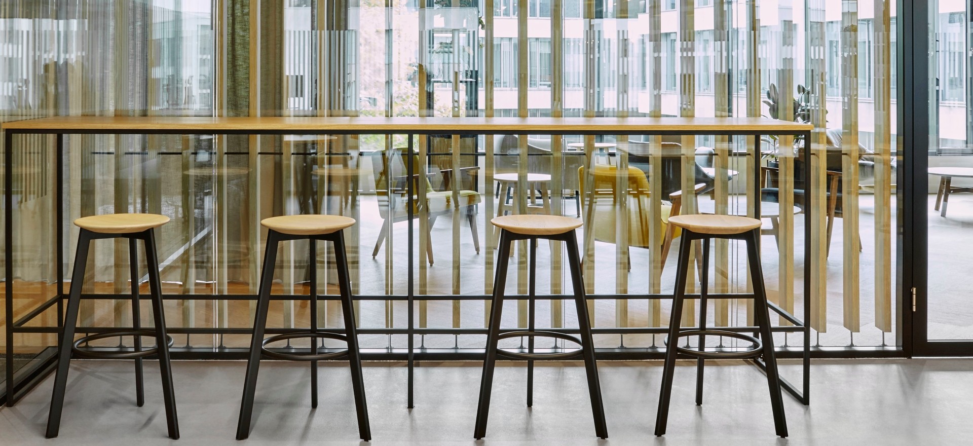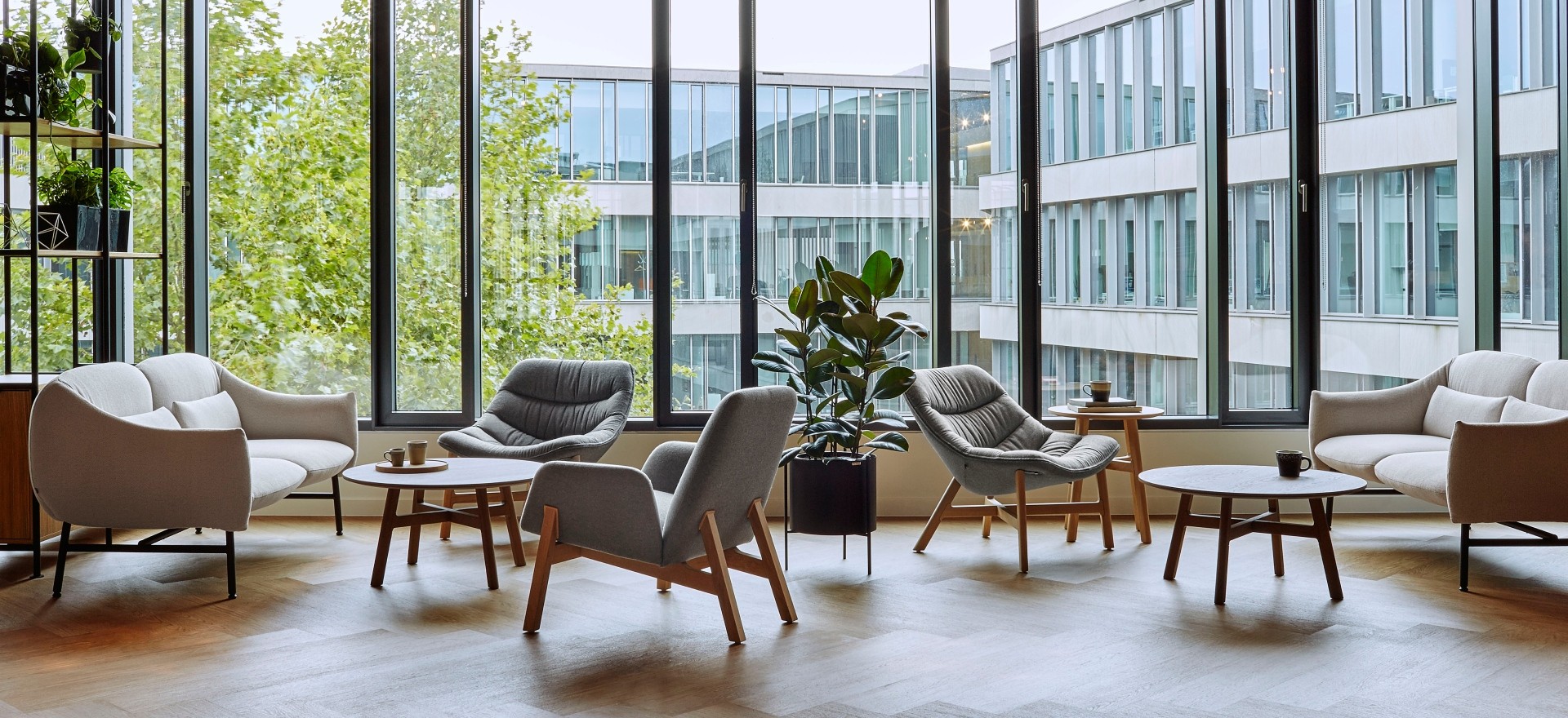 The furnishings in spaces where people work and relax include Noti’s welcoming and eye-catching furniture, including Lua, Mishell soft, Gap and Sona armchairs and sofas, alongside Belem and Banffy stools.