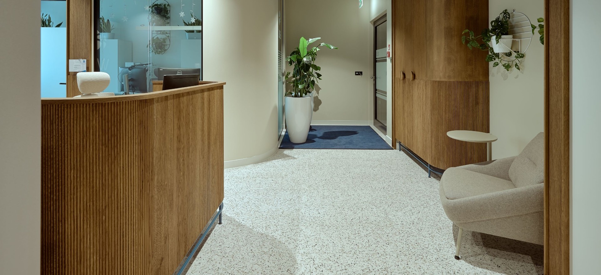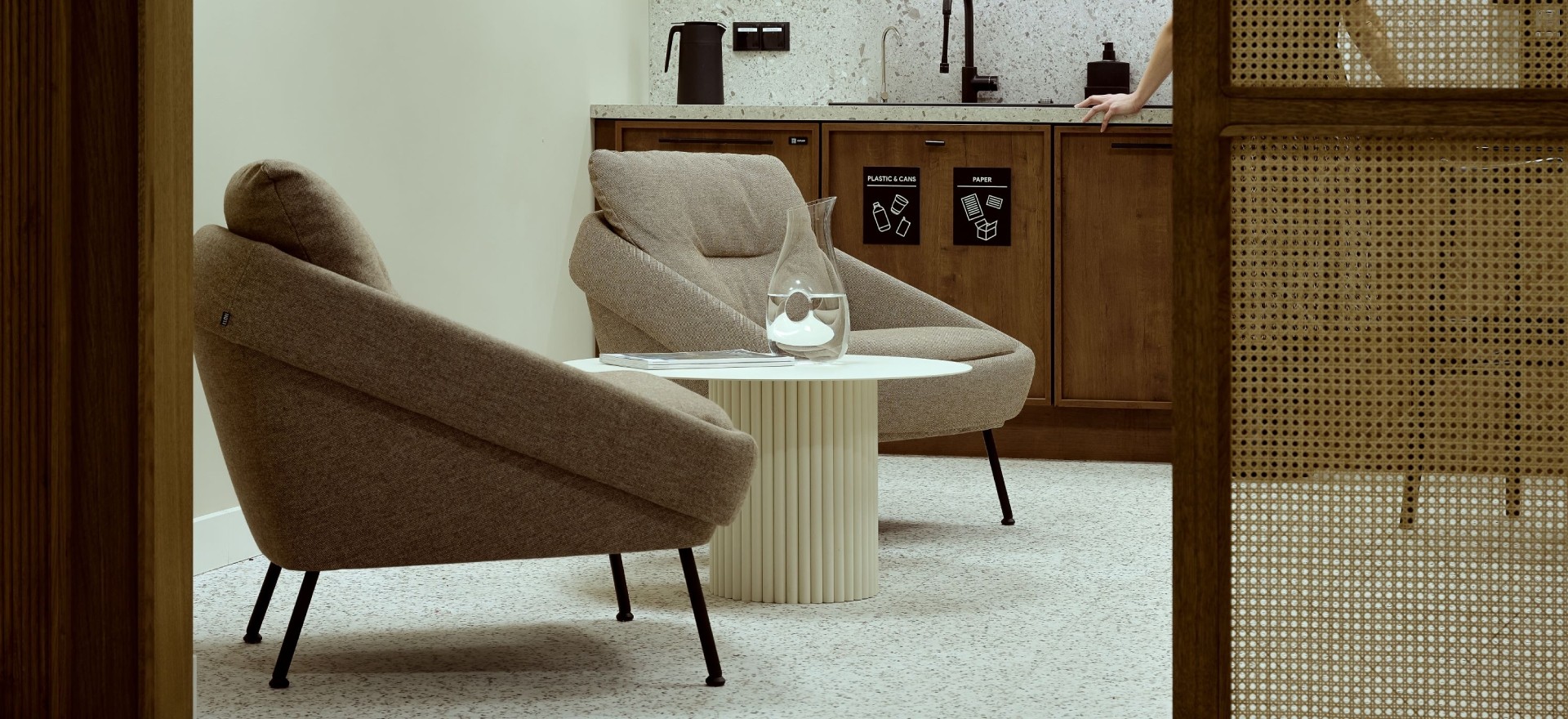 The furniture comes from Polish manufacturers, including Noti's Nome armchairs in the reception area, the offices and the canteen.