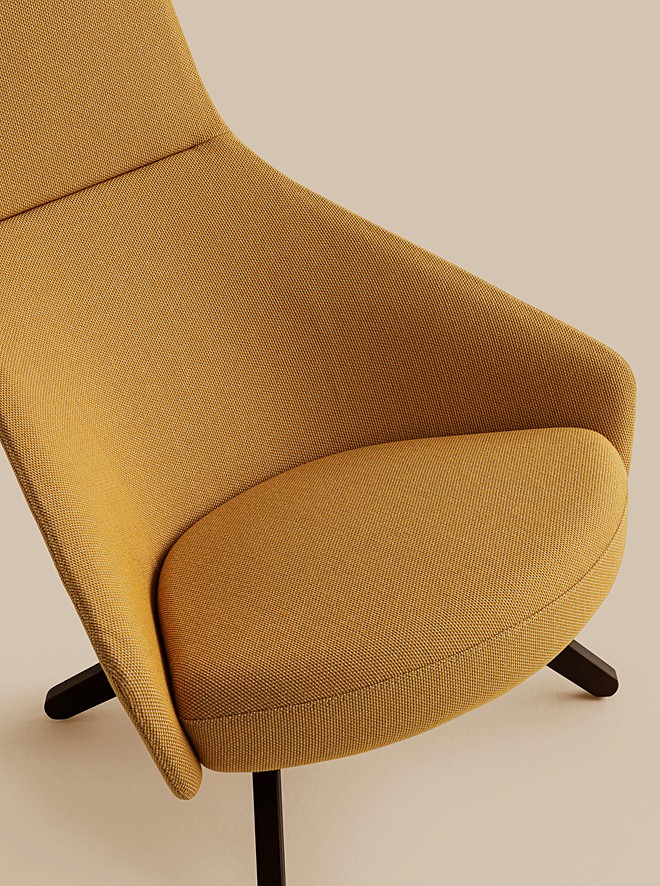 Son ergonomie et son confort sont améliorés par un mécanisme de réglage du dossier, disponible en option. Cela permet de régler l'angle d'inclinaison de 12° pour obtenir une position presque allongée et augmenter le confort. La collection est complétée par un repose-pied.