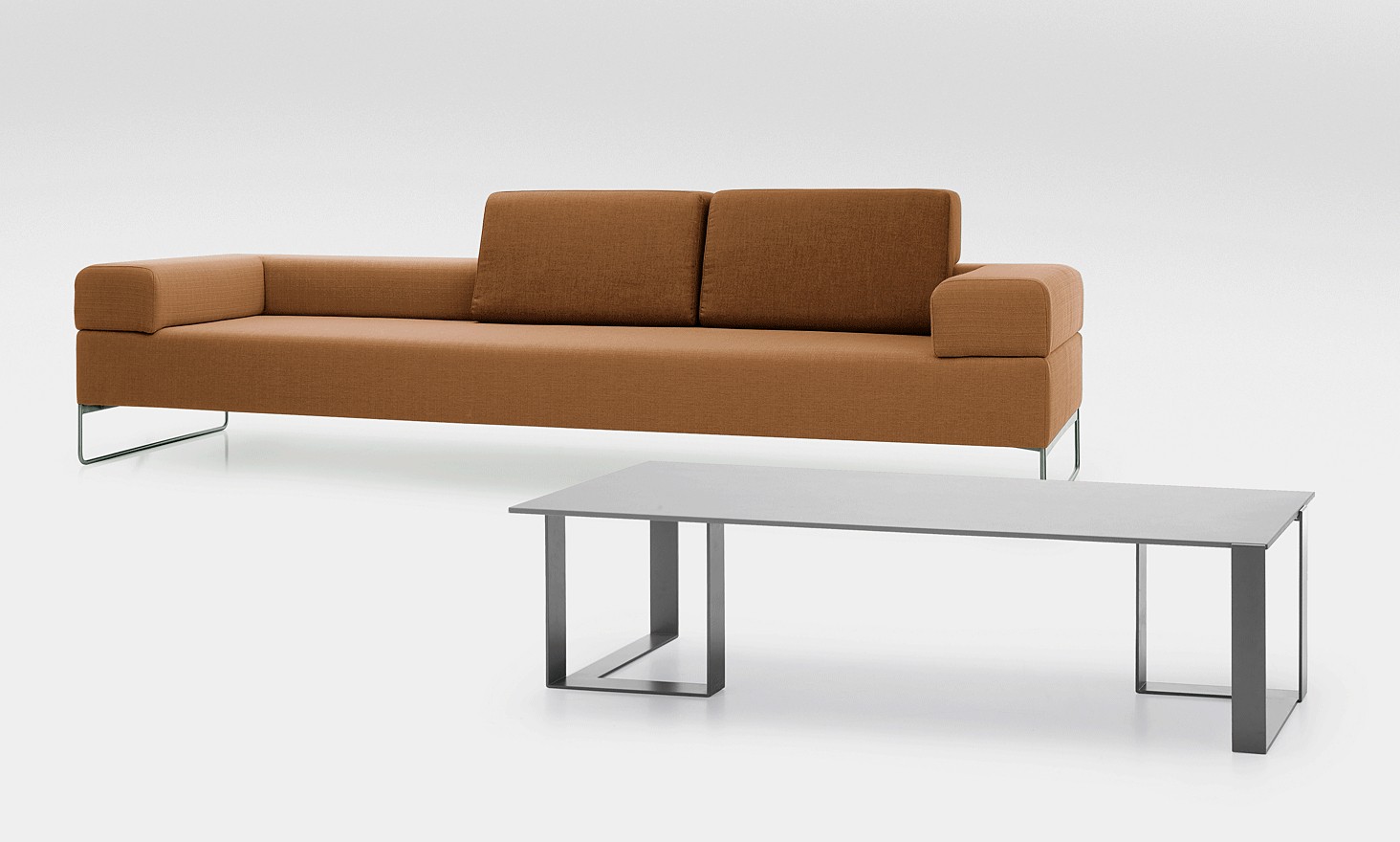 Tous les modules reposent sur des piètements luges en acier qui complètent la forme de l'ensemble du meuble.