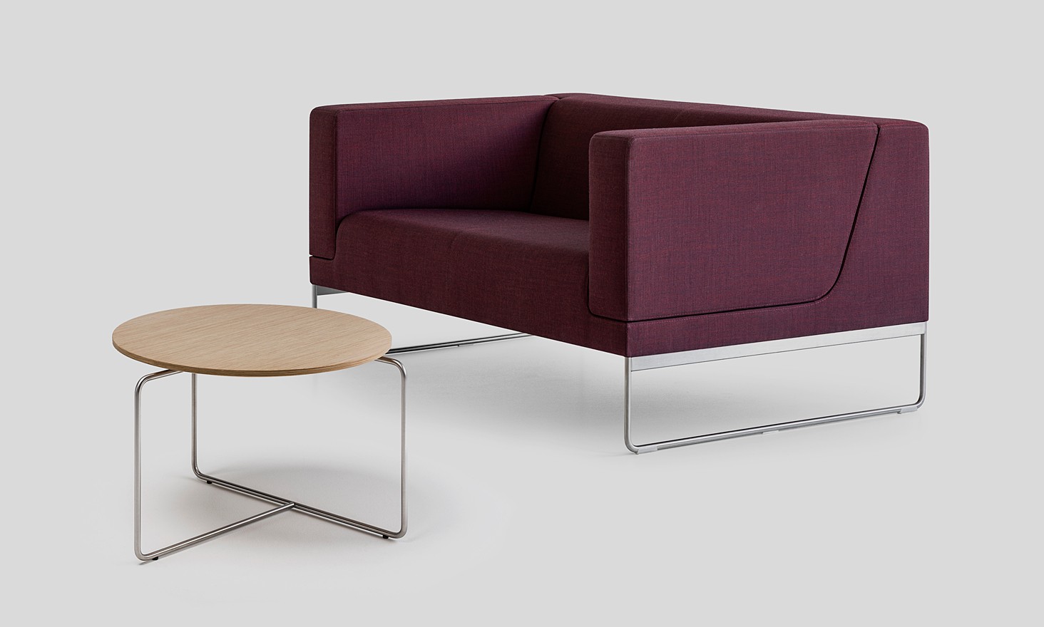 Vous pouvez choisir entre deux types de piètement en acier inoxydable : le piètement luge et les pieds. L'ensemble peut être assorti d'une table avec un piètement luge croisé caractéristique et un plateau plaqué aux bords arrondis.