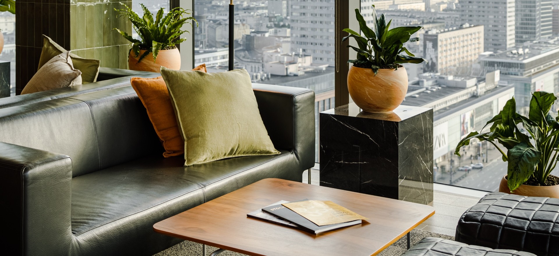 À l’intérieur, le minimalisme austère du cabinet se transforme en un espace de rencontres ouvert, accueillant et confortable, avec une vue imprenable sur Varsovie. Les blancs, les gris et les teintes de beige sont combinés au bleu marine, au rouge et au vert, le tout formant un endroit hors du commun. Son originalité est soulignée par les meubles Noti provenant des collections Algo, Nome, Manta, Mishell soft et Tristos.