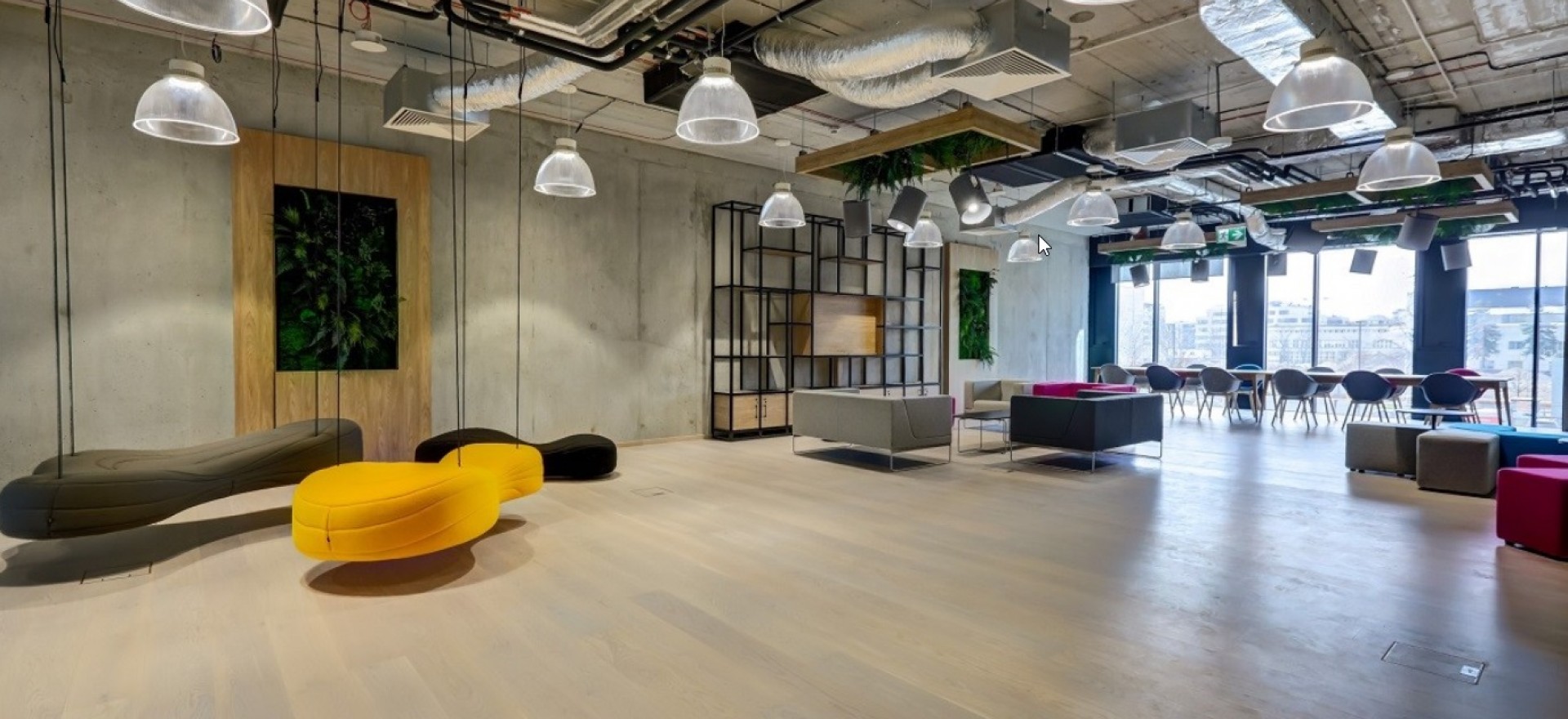 Des canapés Tritos et Bouli, des chaises Mamu, le mobilier Manta et des tables Rosco sont tous présents au bureau de coworking HubHub à Varsovie.