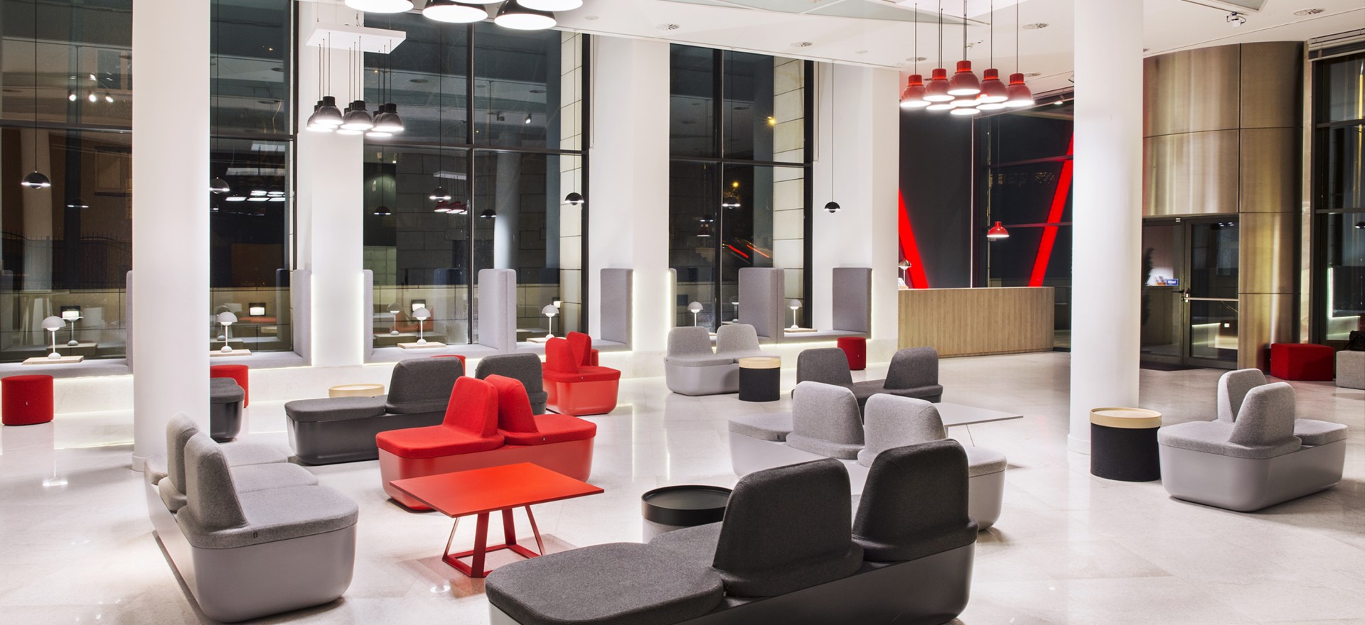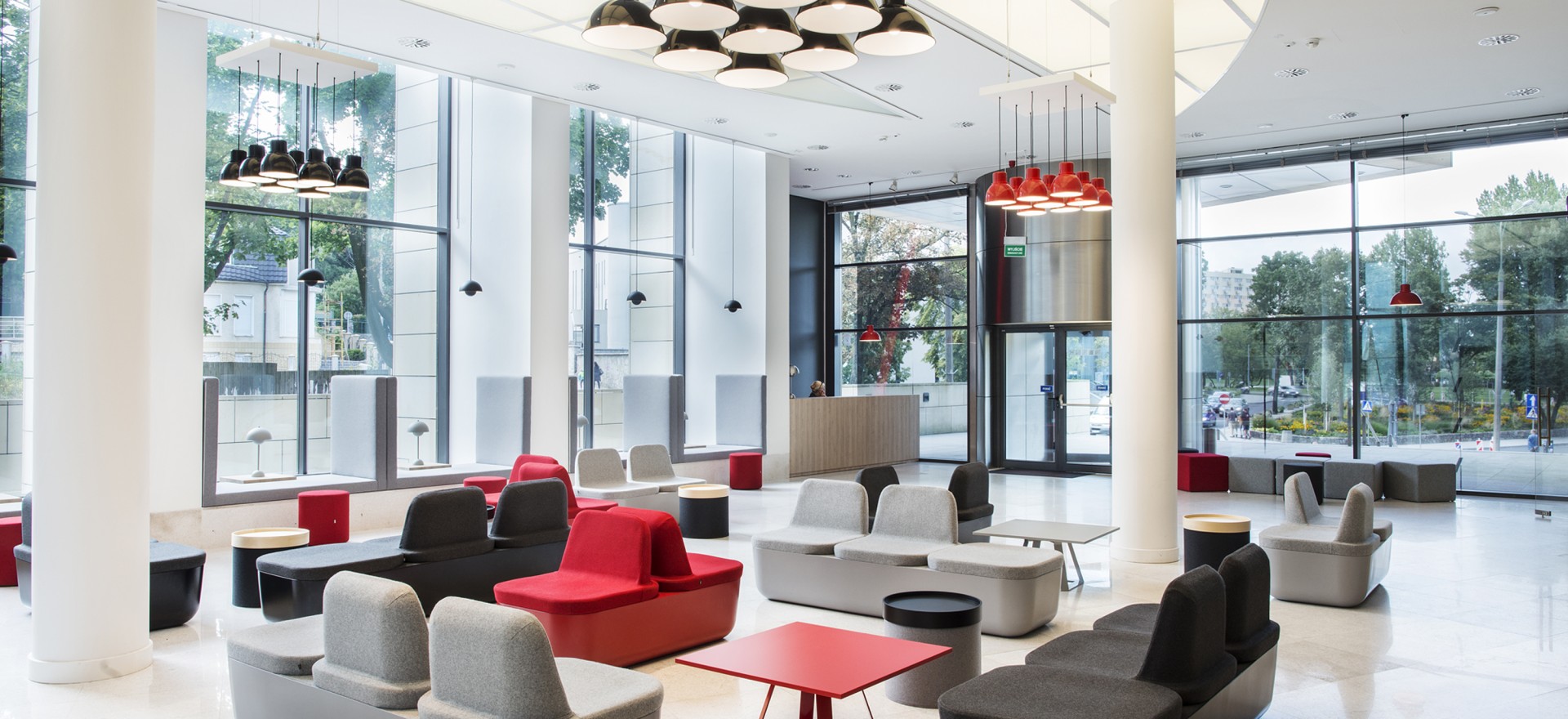 Le mobilier Noti a été utilisé pour la réalisation. L'espace de réunion et de conversation, vaste et lumineux, est parfaitement organisé à l’aide des sièges fonctionnels Termo de Tomek Rygalik.
