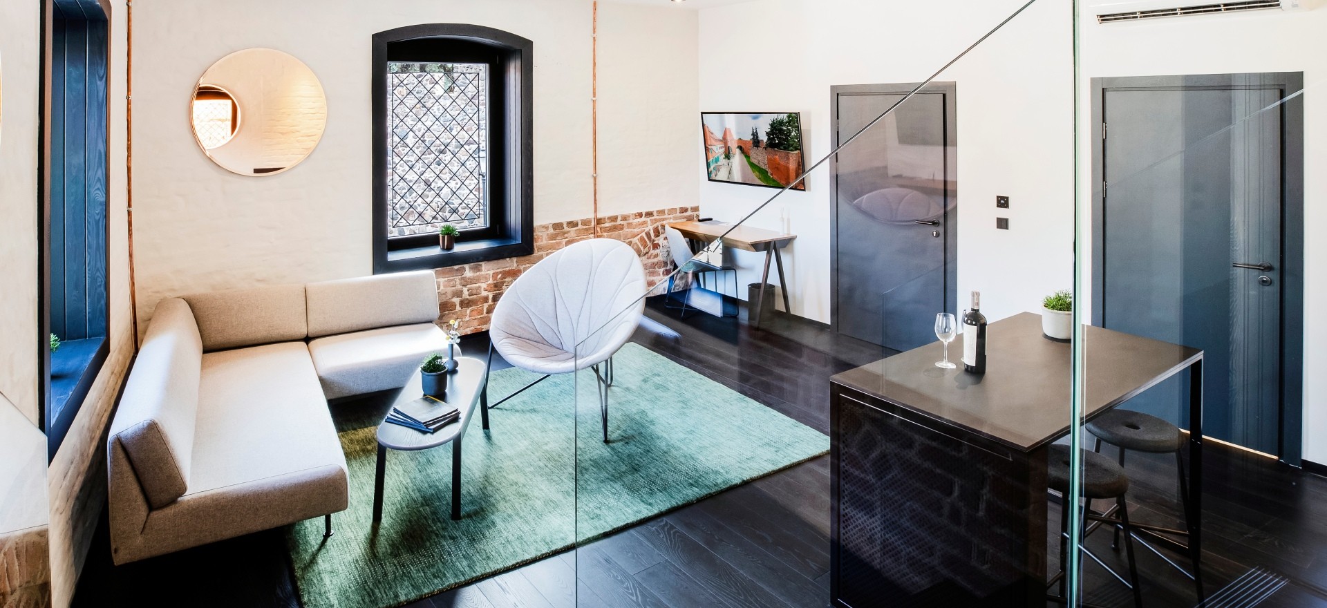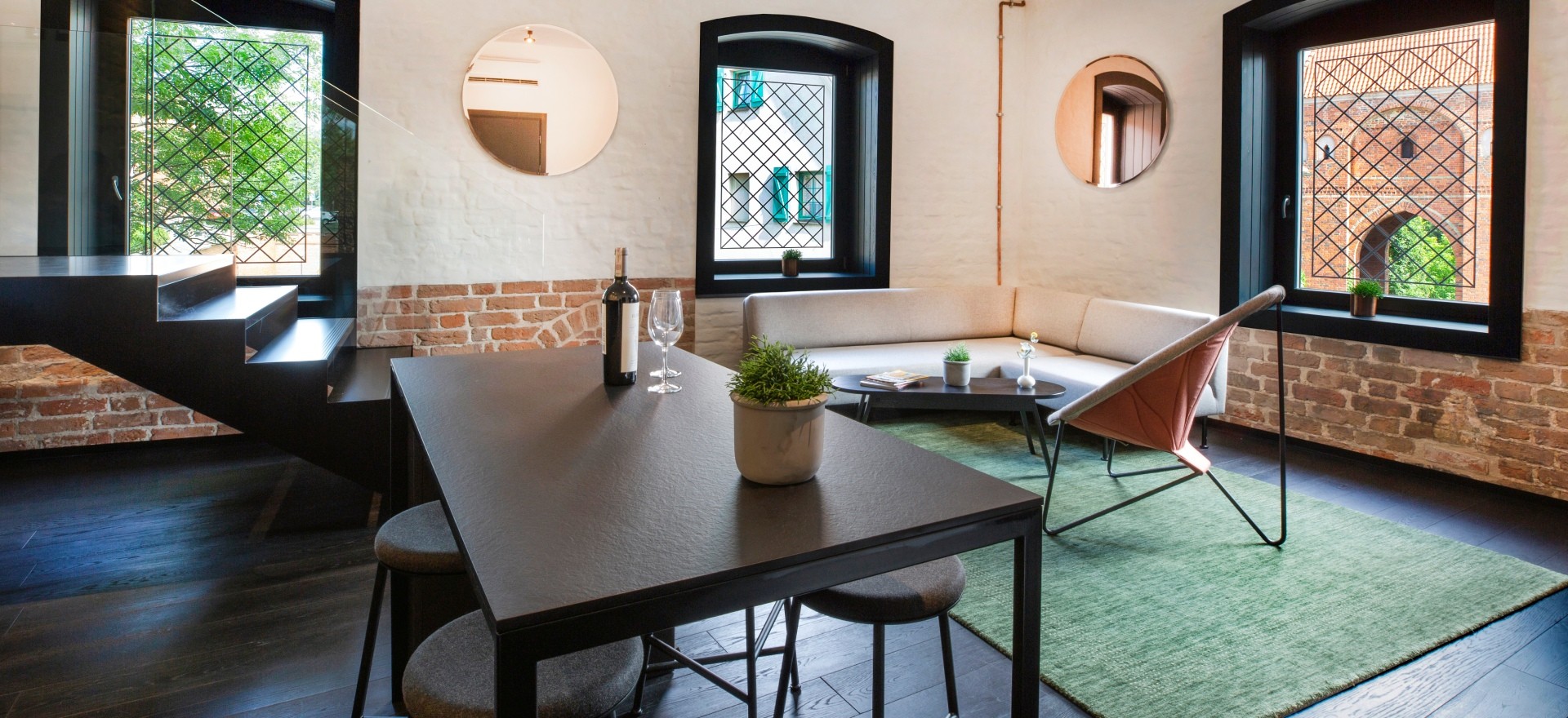 Le bâtiment était autrefois un moulin médiéval qui servait le château teutonique, puis une boulangerie, un entrepôt et un immeuble de rapport, avant de devenir un hôtel de charme.