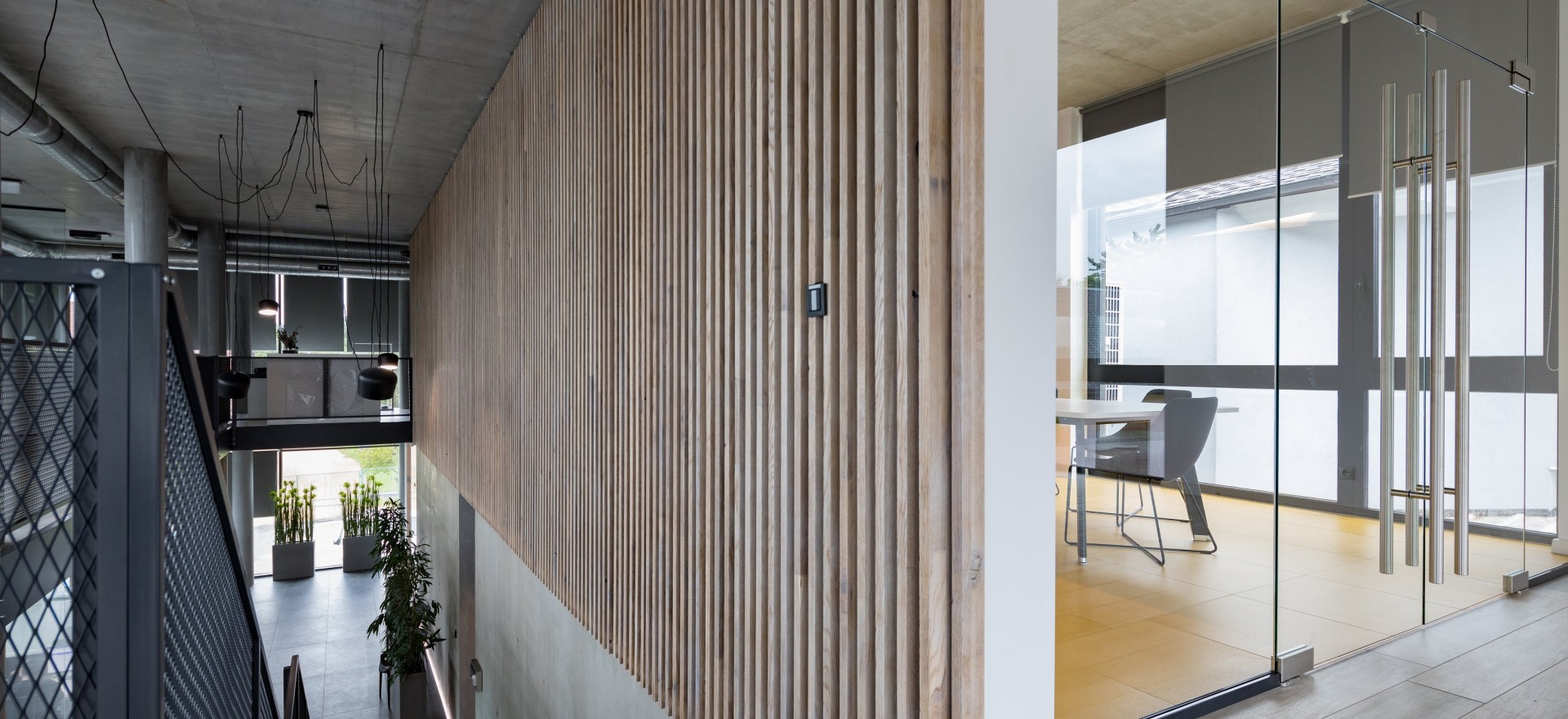 Son siège est un bâtiment minimaliste avec une façade vitrée entourée d’un cadre anthracite qui souligne sa forme moderne.