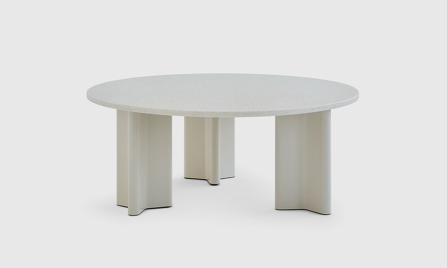 Die Möbelkollektion Cactus zeichnet sich durch ihre skulpturale Basis aus, die auf die Form des Kaktus Euphorbia Trigona in der Inspiration des Designers verweist. Die markante Aluminiumbasis wurde in einem Extrusionsverfahren aus einer Aluminiumlegierung nach einer von Piotr Kuchciński entworfenen Form hergestellt. Das dreiarmige Aluminiumprofil in verschiedenen Längen dient als Basis für die Tische und als Träger für die Regalbretter. Doppelte, aber in verschiedenen Winkeln gedrehte Aluminiumelemente schaffen eine dynamische Komposition, die den Raum belebt.