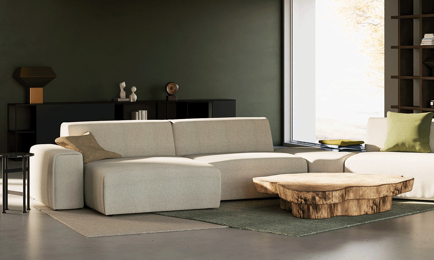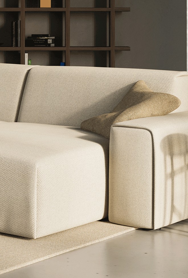 Dank verschiedener Körper können die Sofaelemente an eigene Bedürfnisse und eigenen Raum angepasst werden. Das Set der verfügbaren Sitze ermöglicht es, ein klassisches Ecksofa, ein asymmetrisches Sofa oder unauffällige, geometrisch offene Kompositionen zu erstellen.