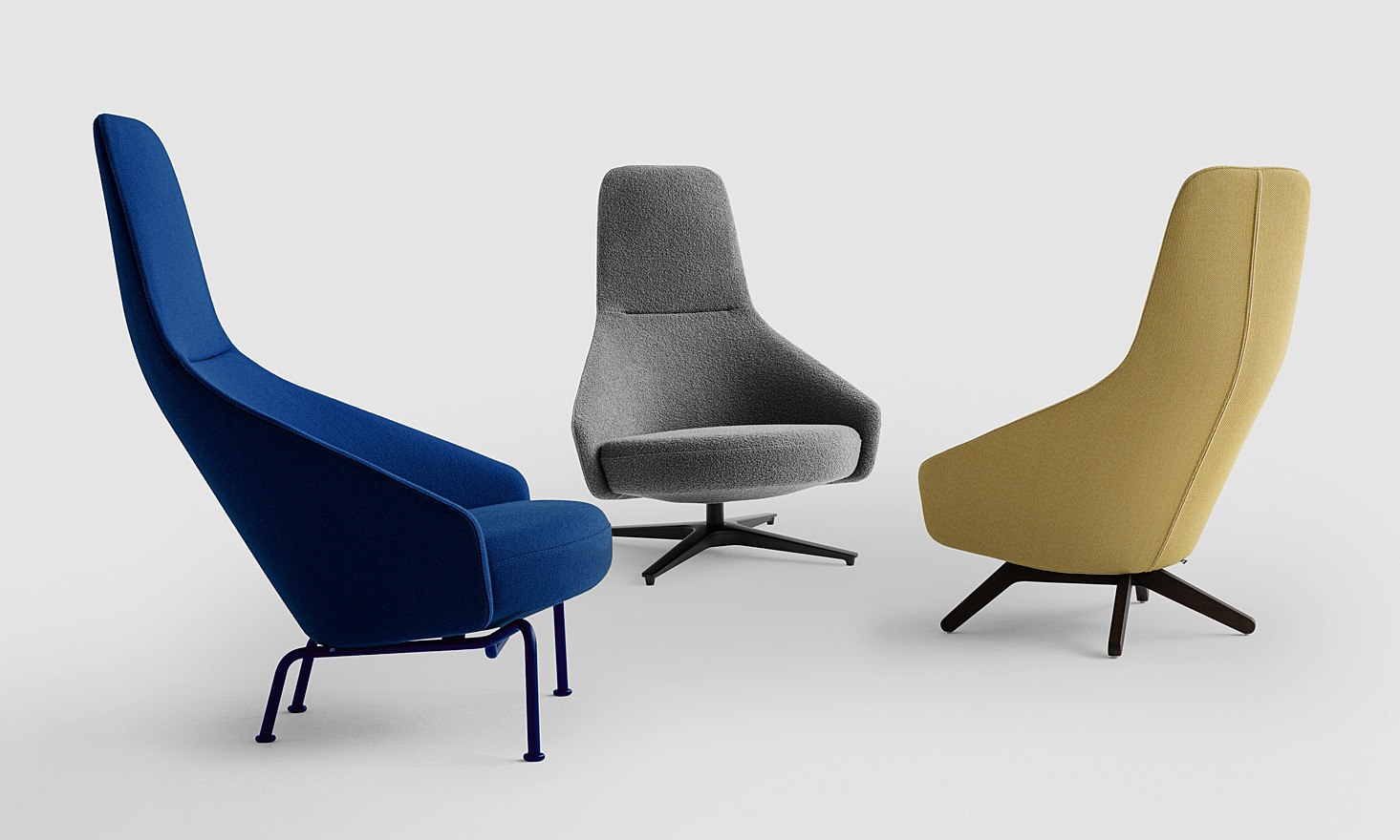 Dank der zahlreichen Basis- und Ausführungsvarianten kann die Kollektion an viele Arten von Innenräumen angepasst werden – ihre dynamische Form macht sie dadurch zu einem auffälligen Objekt eines Raums.