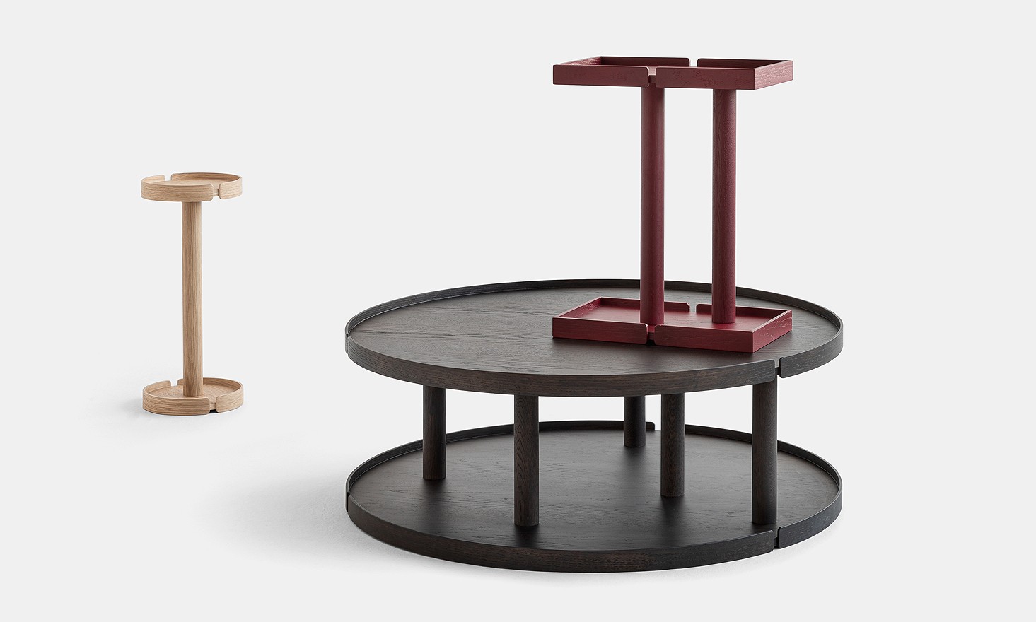 Serif ist eine Kollektion von Tischen mit einer Struktur, die eine freie Interpretation des Kanons der klassischen Architektur ist.