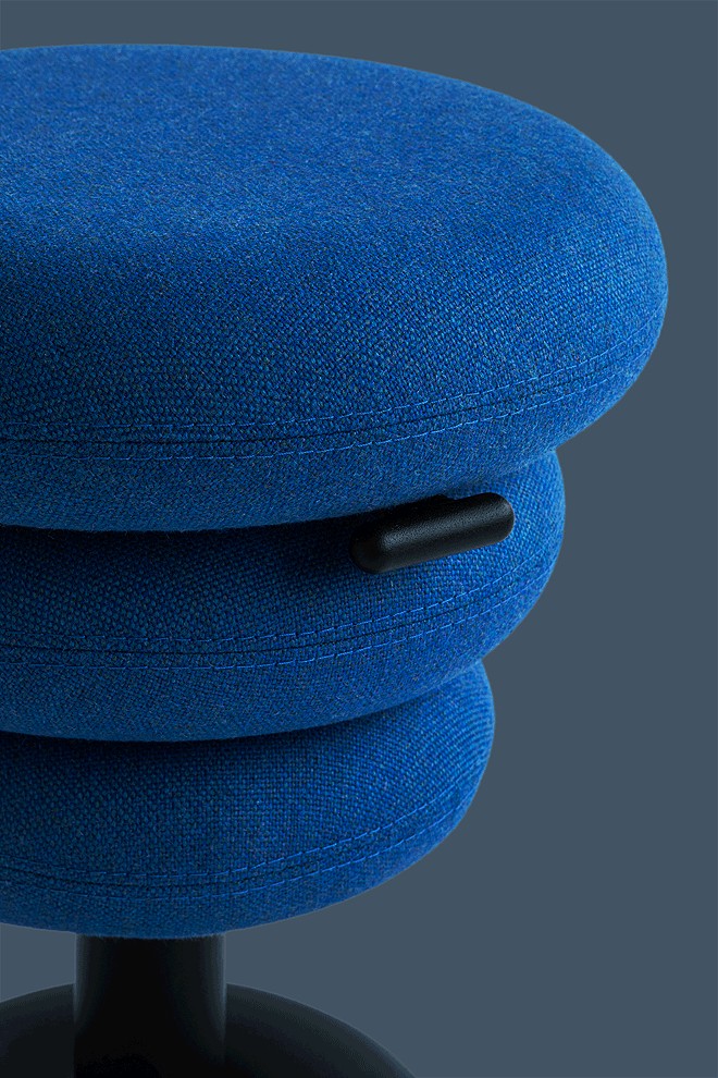 Banffy is a stool that stands out for its playful form and a variety of colour versions. Inspired by a children's toy, the piece is made of variously sized discs stacked one on top of another.