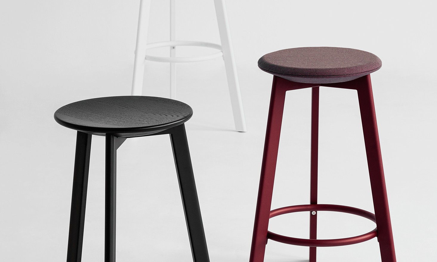 The stools are offered in two heights. 65 and 77 cm for version with wooden seat. 66 and 78 cm for version with upholstered seat.
