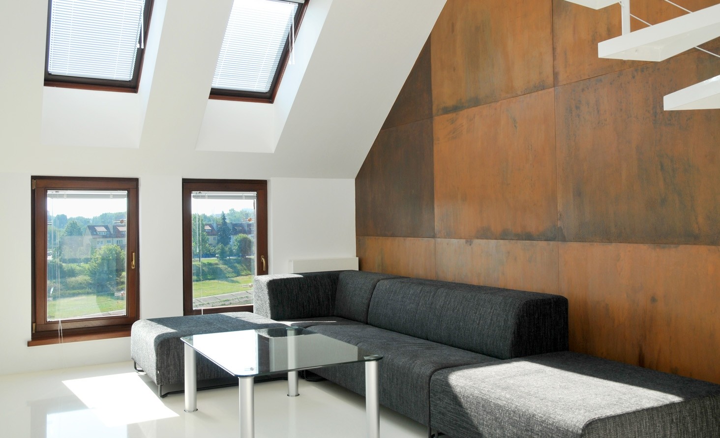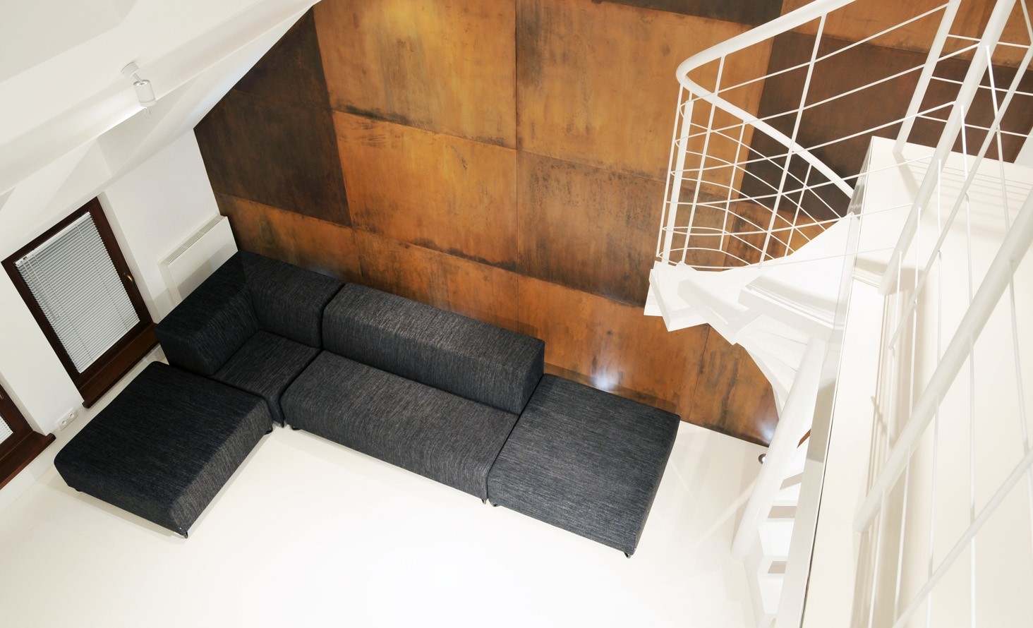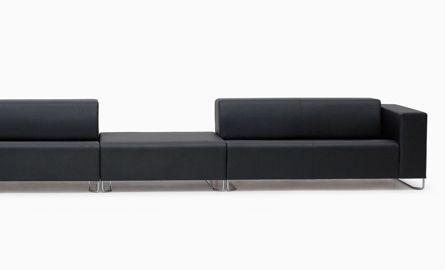 It consists of a large amount of simple sofas and modular connectors which make it possible to create long straight row or corner sofas.
