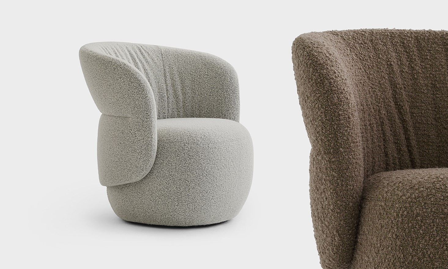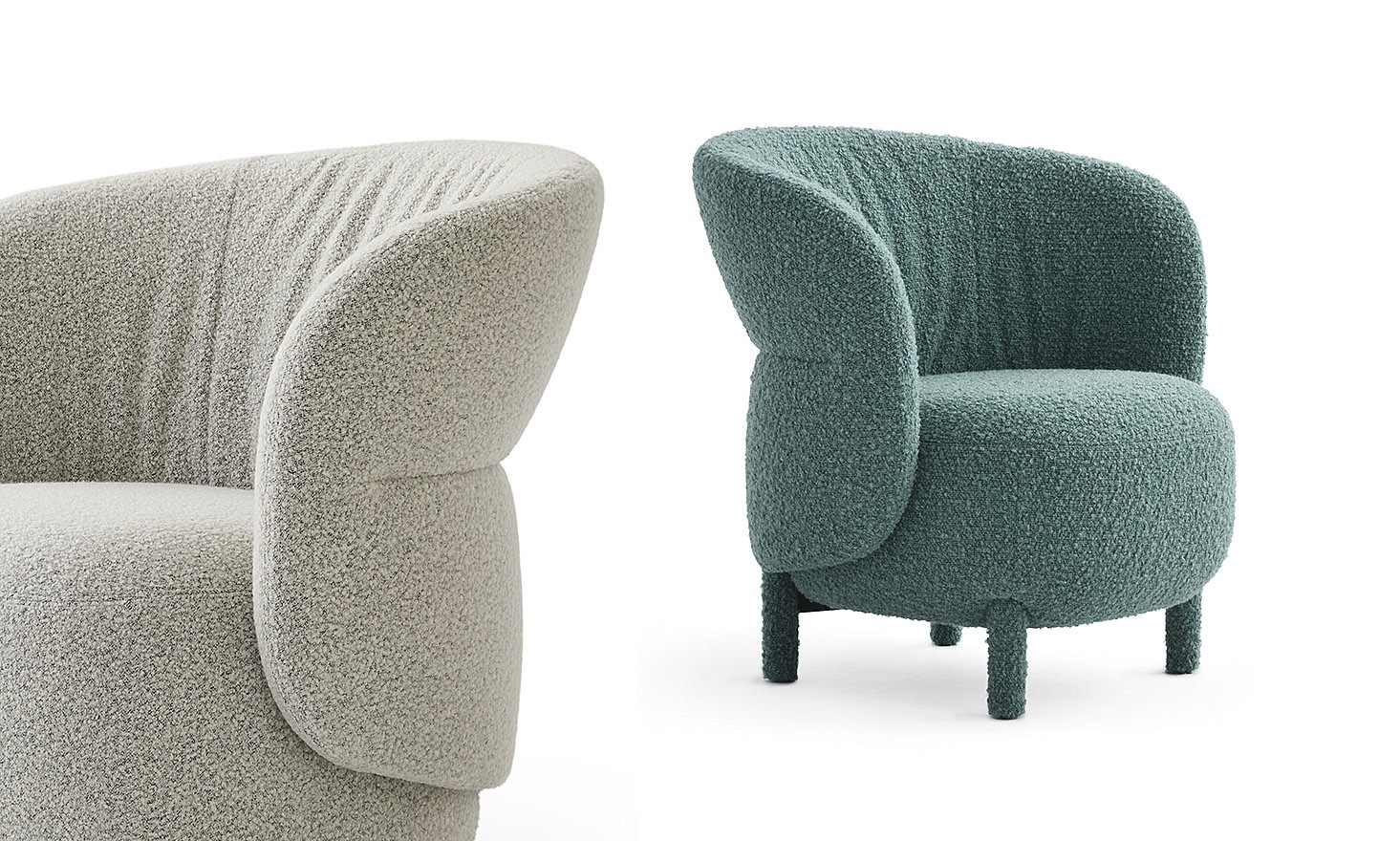 The shapes of all Kori pieces are drawn with soft, fluid lines. The rounded, organic wavy backrests resemble nutshells. They look friendly and comfortable at a glance, as they tuck the user in.